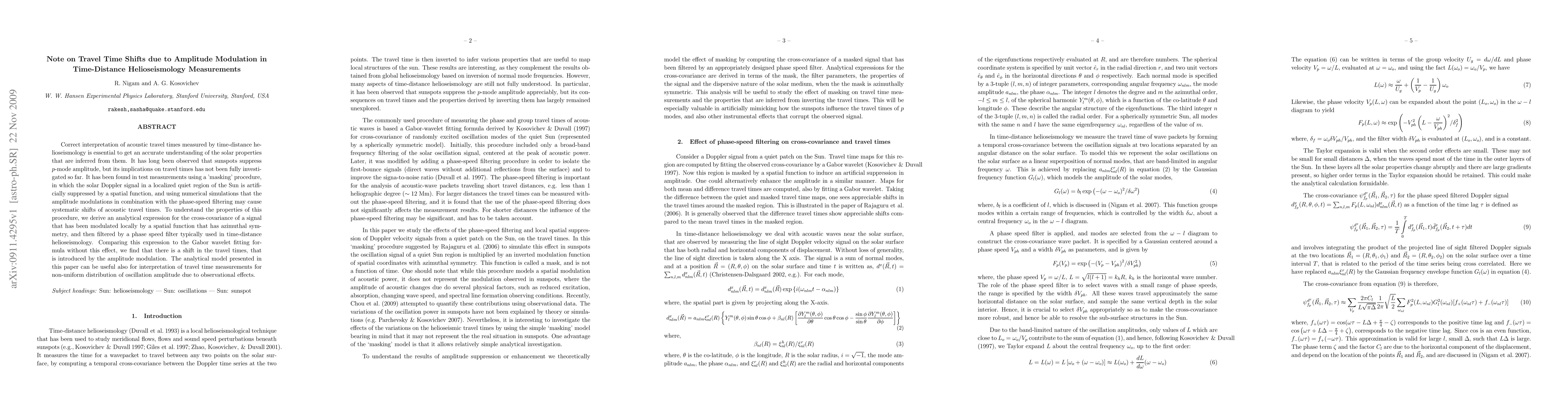 This paper investigates the impact of amplitude modulation on acoustic travel times in time-distance helioseismology, revealing systematic shifts due to sunspots suppressing p-mode amplitude. The authors derive an analytical expression to model these shifts and suggest it can aid in interpreting travel time measurements affected by non-uniform oscillation amplitude.