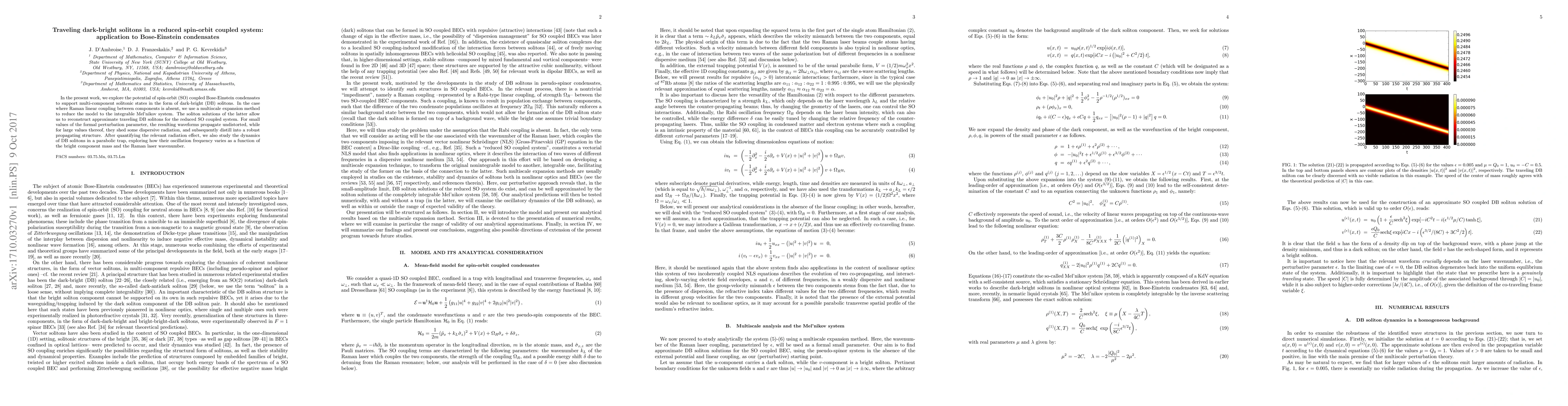 This paper investigates the formation of dark-bright solitons in spin-orbit coupled Bose-Einstein condensates using a multiscale expansion method to reduce the model. The study reveals that these solitons can propagate undistorted for small perturbations, while larger perturbations cause dispersive radiation and eventual stabilization into a robust structure.