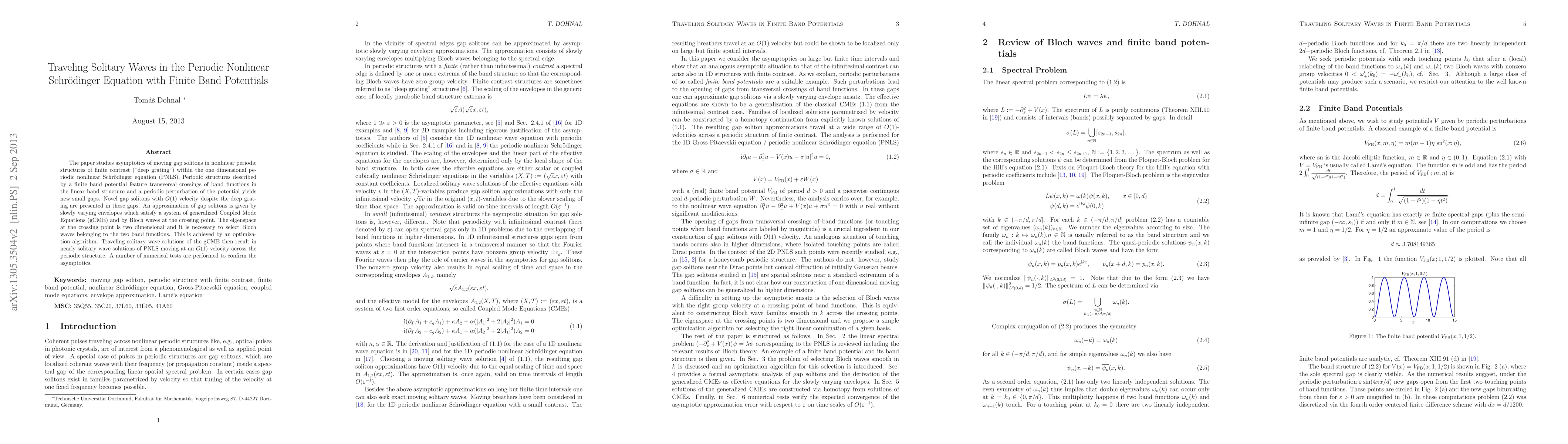 This paper investigates the behavior of traveling gap solitons in one-dimensional periodic nonlinear Schrödinger equations with finite band potentials, revealing novel solitons moving at constant velocity despite deep gratings. It provides an approximation using generalized Coupled Mode Equations and confirms the findings through numerical tests.