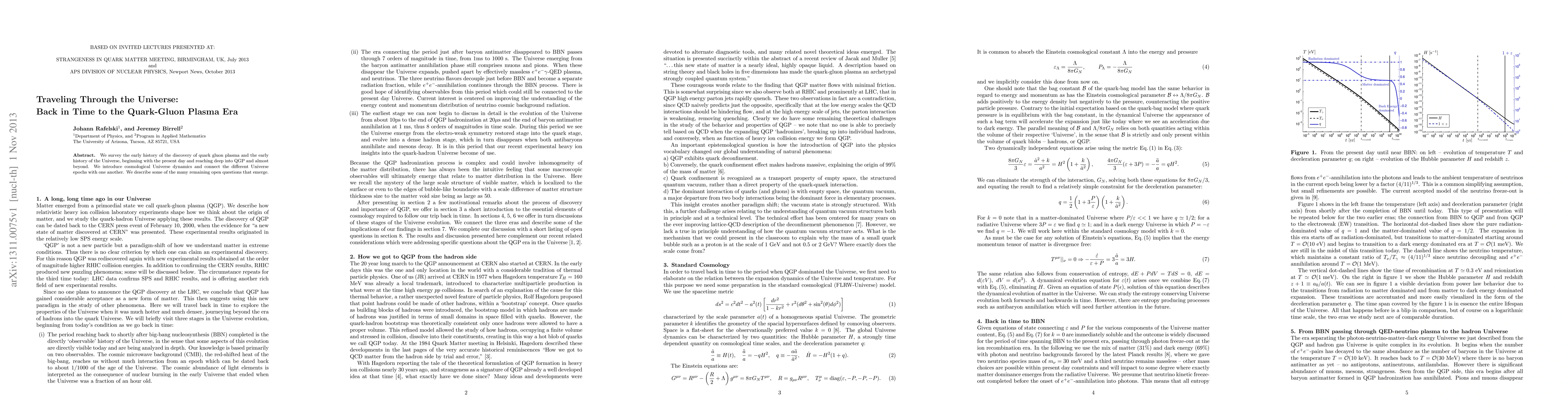 We survey the early history of the discovery of quark gluon plasma and the early history of the Universe, beginning with the present day and reaching deep into QGP and almost beyond. We introduce cosmological Universe dynamics and connect the different Universe epochs with one another. We describe some of the many remaining open questions that emerge.