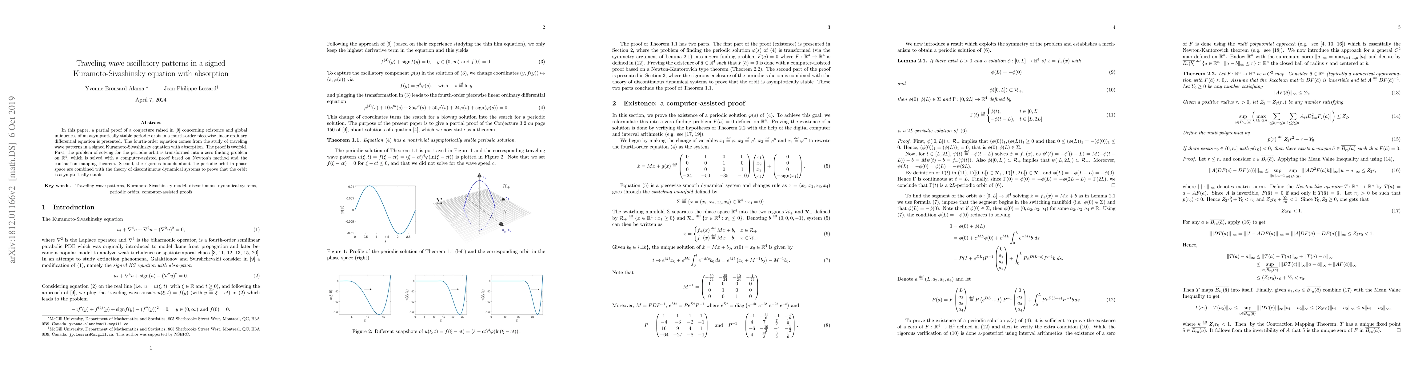 This paper proves the existence and global uniqueness of an asymptotically stable periodic orbit in a fourth-order differential equation derived from the signed Kuramoto-Sivashinsky equation with absorption. The proof involves transforming the problem into a zero finding issue and using computer-assisted methods, along with rigorous bounds and discontinuous dynamical systems theory.