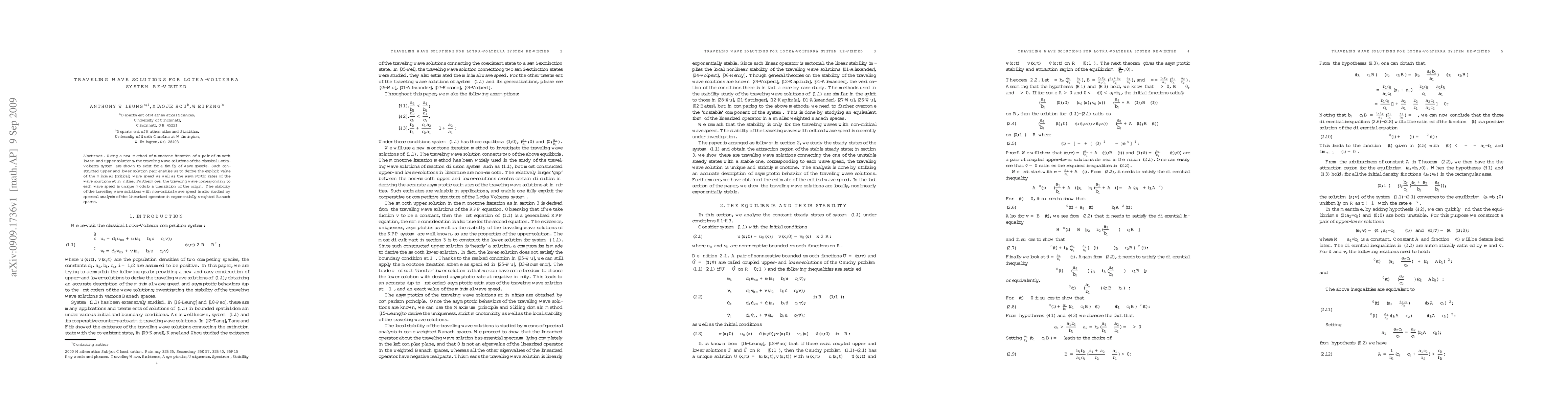 This paper demonstrates the existence of traveling wave solutions for the Lotka-Volterra system using a novel monotone iteration method, establishing the minimal wave speed and wave behavior at infinity. Stability analysis of non-critical wave speeds is conducted via spectral analysis in exponentially weighted Banach spaces.