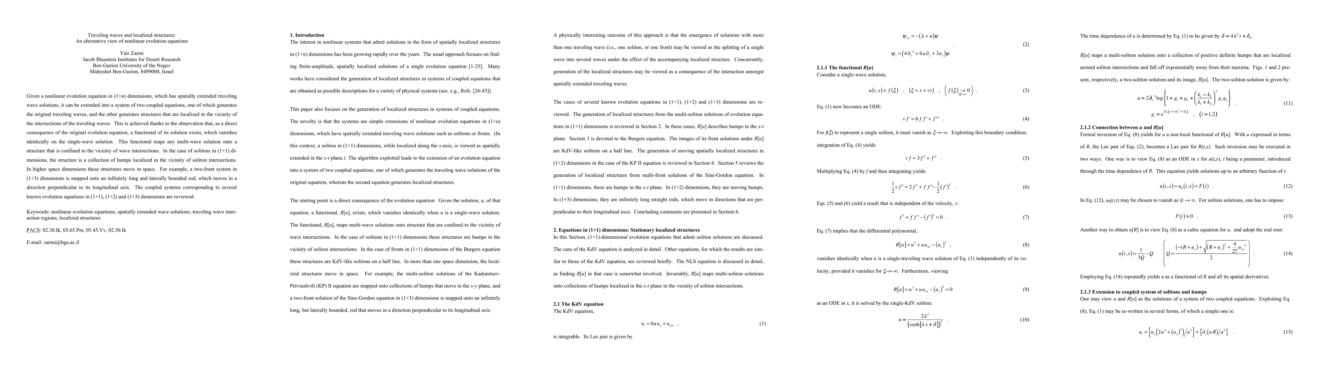 Given a nonlinear evolution equation in (1+n) dimensions, which has spatially extended traveling wave solutions, it can be extended into a system of two coupled equations, one of which generates the original traveling waves, and the other generates structures that are localized in the vicinity of the intersections of the traveling waves. This is achieved thanks to the observation that, as a direct consequence of the original evolution equation, a functional of its solution exists, which vanishes identically on the single-wave solution. This functional maps any multi-wave solution onto a structure that is confined to the vicinity of wave intersections. In the case of solitons in (1+1) dimensions, the structure is a collection of humps localized in the vicinity of soliton intersections. In higher space dimensions these structures move in space. For example, a two-front system in (1+3) dimensions is mapped onto an infinitely long and laterally bounded rod, which moves in a direction perpendicular to its longitudinal axis. The coupled systems corresponding to several known evolution equations in (1+1), (1+2) and (1+3) dimensions are reviewed.