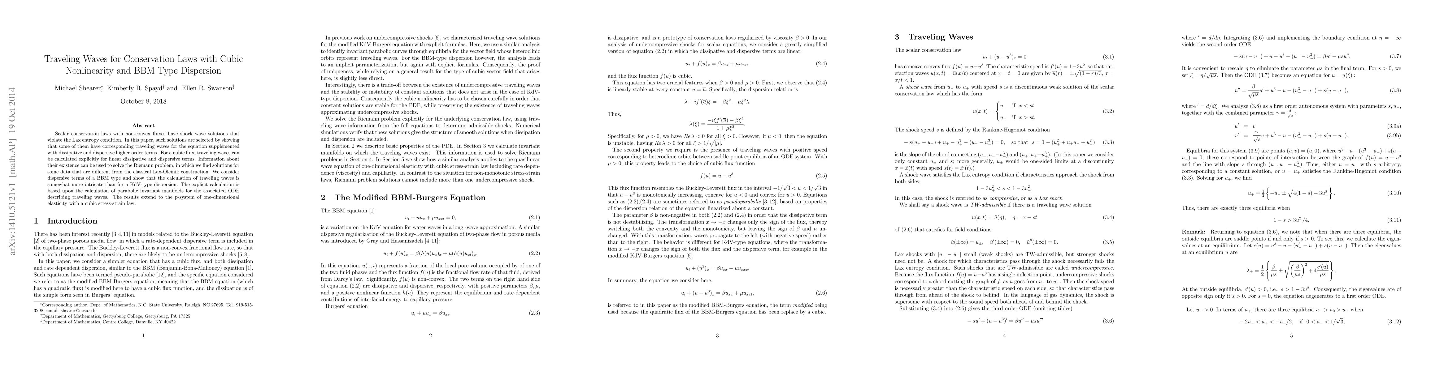 This paper explores scalar conservation laws with non-convex fluxes, focusing on selecting shock wave solutions that violate the Lax entropy condition by identifying corresponding traveling waves with dissipative and dispersive terms. It explicitly calculates traveling waves for cubic flux with BBM-type dispersion, extending the results to the p-system of one-dimensional elasticity.
