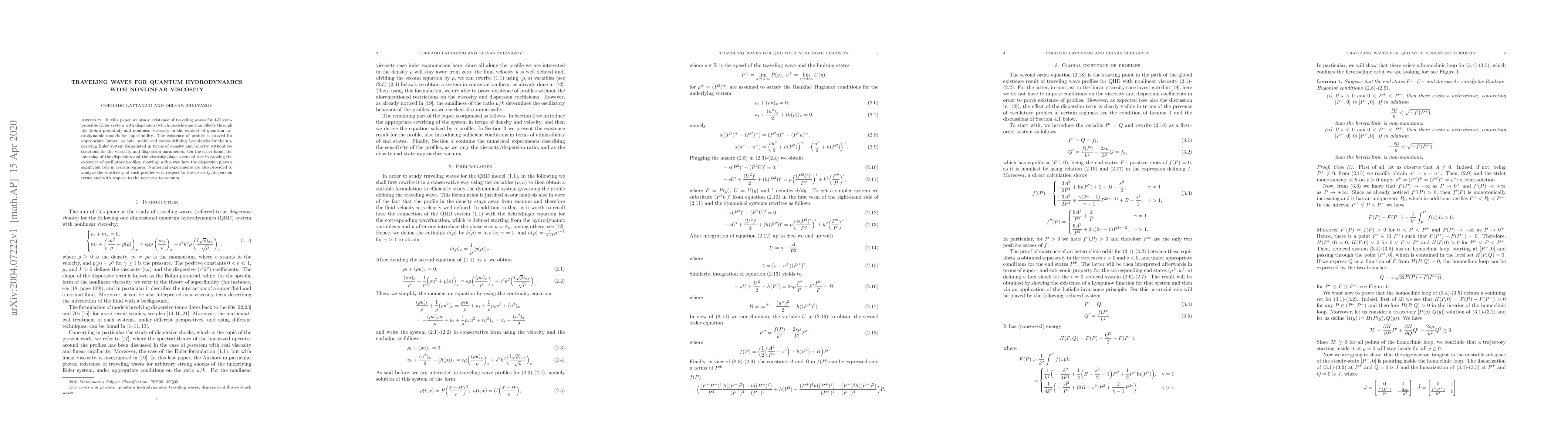 This paper proves the existence of traveling wave solutions for a 1-D compressible Euler system with dispersion and nonlinear viscosity, modeling quantum hydrodynamics in superfluidity. The study highlights the significant role of dispersion in generating oscillatory profiles, while numerical experiments assess the sensitivity of these profiles to viscosity/dispersion parameters and vacuum conditions.