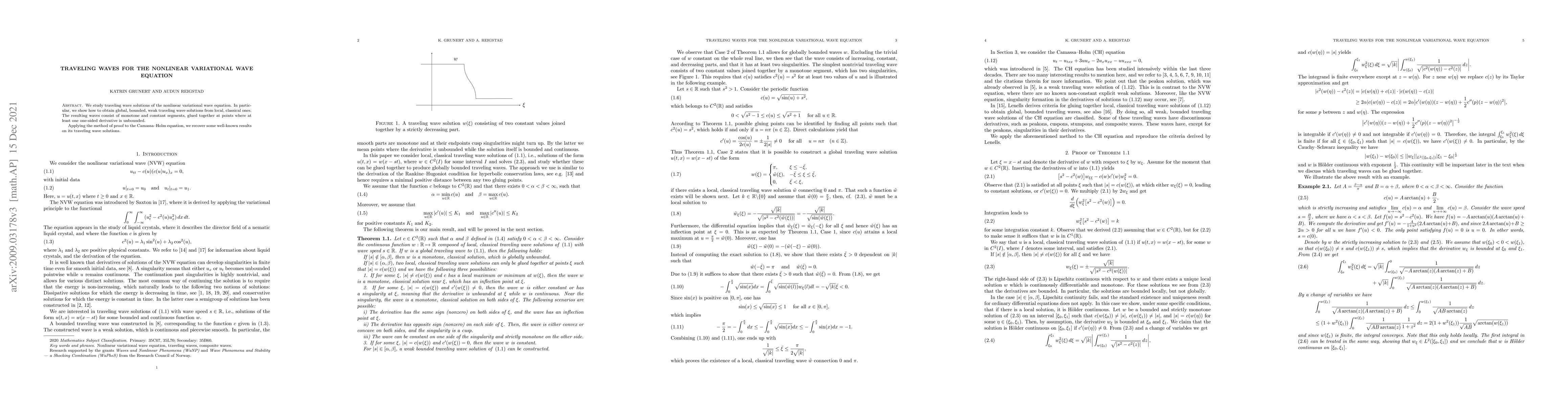 Researchers developed a method to create global, bounded traveling wave solutions from local, classical ones for the nonlinear variational wave equation, recovering known results on its traveling waves.