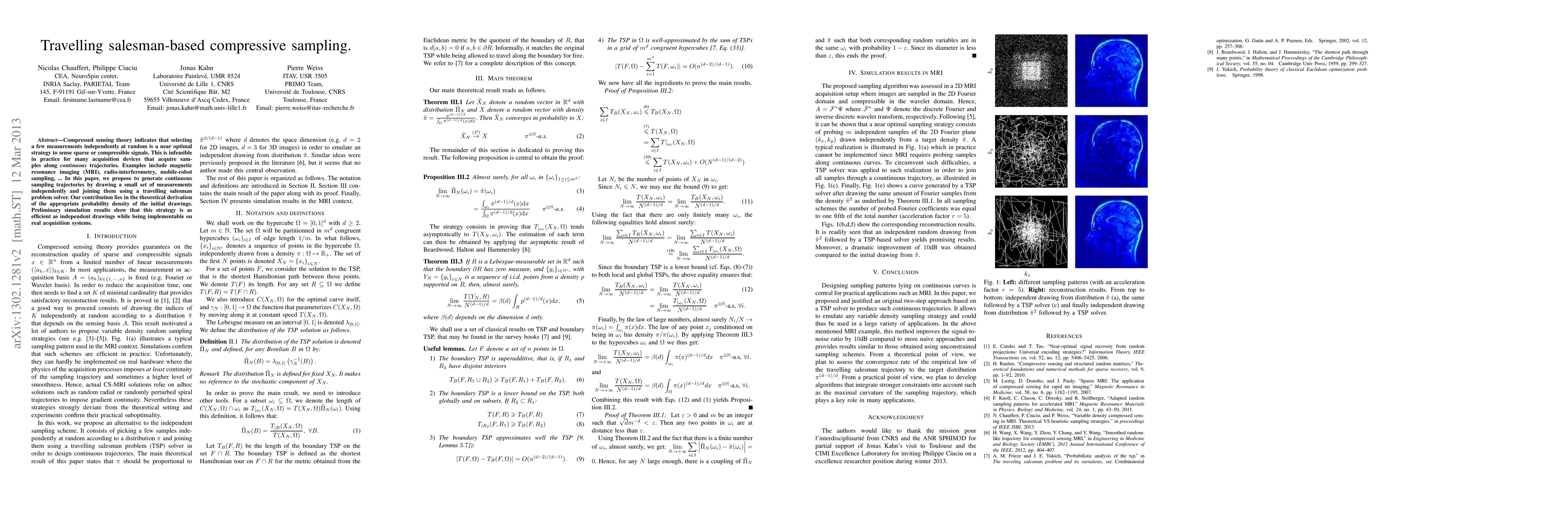 Compressed sensing theory indicates that selecting a few measurements independently at random is a near optimal strategy to sense sparse or compressible signals. This is infeasible in practice for many acquisition devices that acquire samples along continuous trajectories (e.g., radial, spiral, ...). Examples include magnetic resonance imaging (MRI) or radiointerferometry. In this paper, we propose to generate continuous sampling trajectories by drawing a small set of measurements independently and joining them using a travelling salesman problem solver. Our contribution lies in the theoretical derivation of the appropriate probability density of the initial drawings. Preliminary computational results show that this strategy is as efficient as independent drawings while being implementable on real acquisition systems.