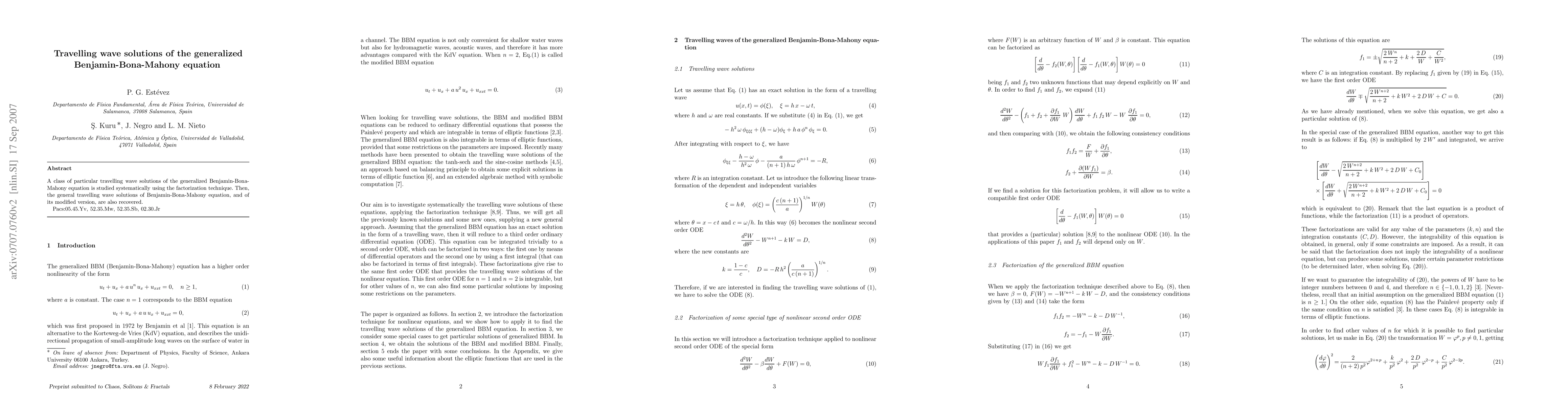 This paper systematically investigates specific travelling wave solutions of the generalized Benjamin-Bona-Mahony equation using factorization techniques. It also recovers the general travelling wave solutions for both the original and modified versions of the equation.