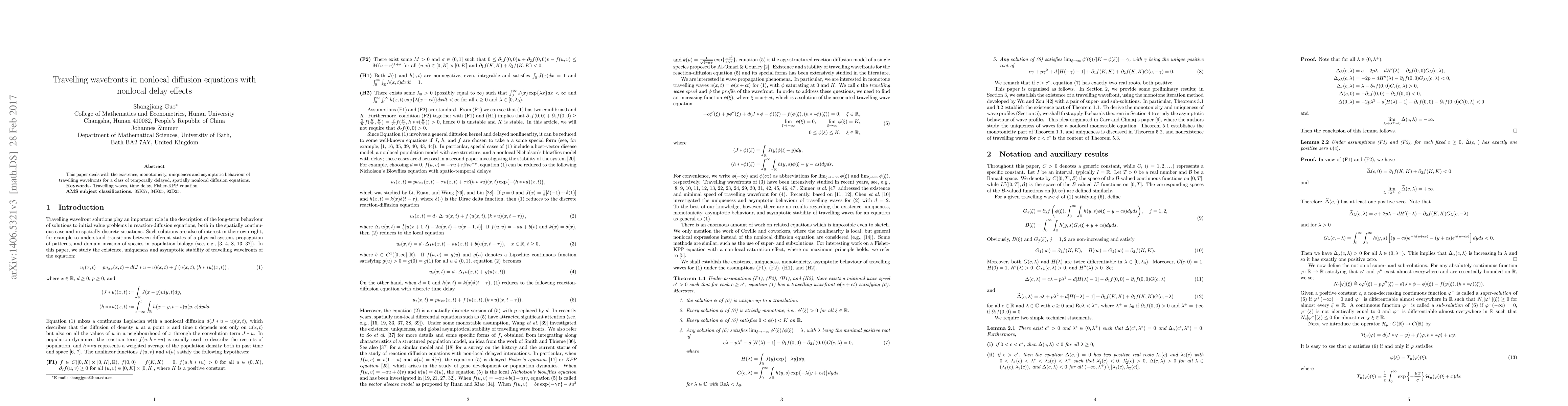 Summary: This research investigates the characteristics of travelling wavefronts in nonlocal diffusion equations that incorporate nonlocal delay effects, focusing on their existence, monotonicity, uniqueness, and asymptotic behavior.