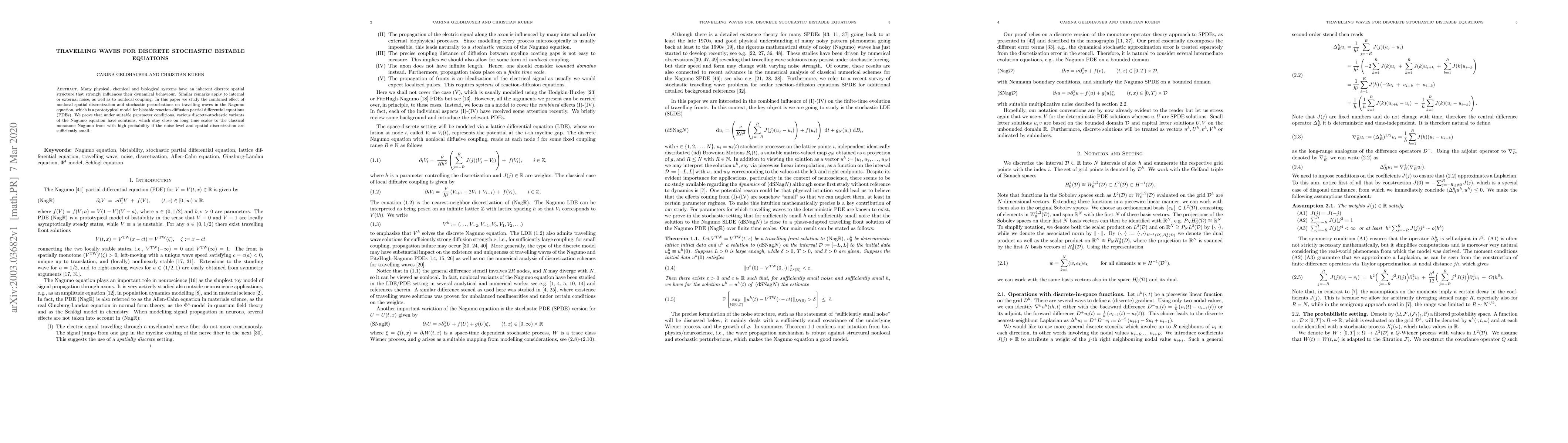 This paper investigates the impact of nonlocal spatial discretization and stochastic perturbations on travelling waves in the Nagumo equation, a model for bistable reaction-diffusion systems. It proves the existence of solutions that approximate the classical Nagumo front under suitable conditions, provided that noise and discretization are small.