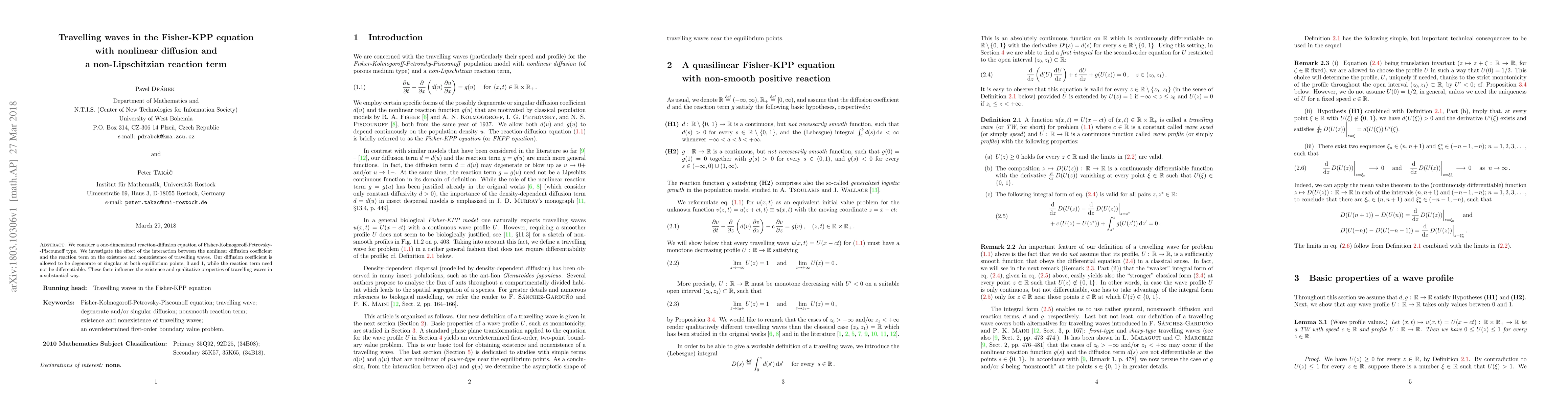 This paper examines the impact of nonlinear diffusion and a non-differentiable reaction term on the existence and properties of travelling waves in a one-dimensional Fisher-KPP equation, where the diffusion coefficient can be degenerate or singular at equilibrium points. The study reveals significant effects on travelling wave dynamics due to these interactions.