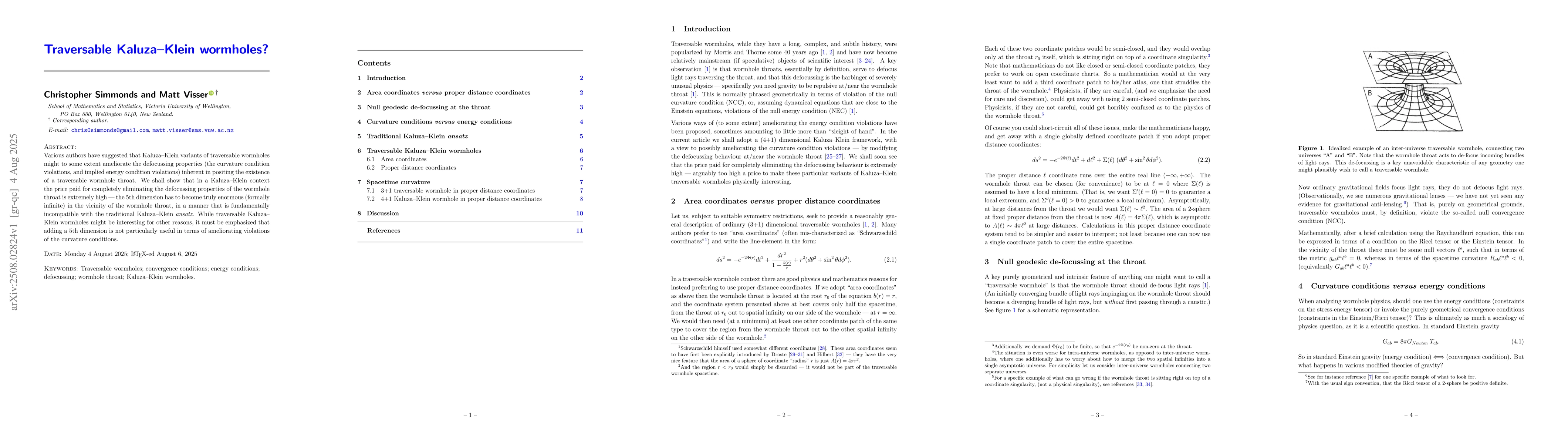 Various authors have suggested that Kaluza--Klein variants of traversable wormholes might to some extent ameliorate the defocussing properties (the curvature condition violations, and implied energy condition violations) inherent in positing the existence of a traversable wormhole throat. We shall show that in a Kaluza--Klein context the price paid for completely eliminating the defocussing properties of the wormhole throat is extremely high -- the 5th dimension has to become truly enormous (formally infinite) in the vicinity of the wormhole throat, in a manner that is fundamentally incompatible with the traditional Kaluza--Klein ansatz. While traversable Kaluza--Klein wormholes might be interesting for other reasons, it must be emphasized that adding a 5th dimension is not particularly useful in terms of ameliorating violations of the curvature conditions.
