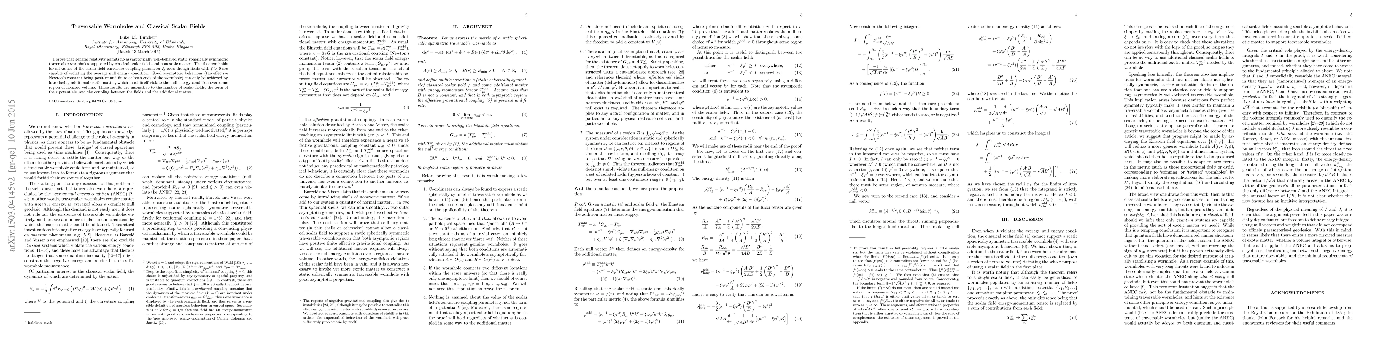 I prove that general relativity admits no asymptotically well-behaved static spherically symmetric traversable wormholes supported by classical scalar fields and nonexotic matter. The theorem holds for all values of the scalar field curvature coupling parameter $\xi$, even though fields with $\xi>0$ are capable of violating the average null energy condition. Good asymptotic behaviour (the effective Newton's constant being positive and finite at both ends of the wormhole) can only be achieved by introducing additional exotic matter, which must itself violate the null energy condition over some region of nonzero volume. These results are insensitive to the number of scalar fields, the form of their potentials, and the coupling between the fields and the additional matter.