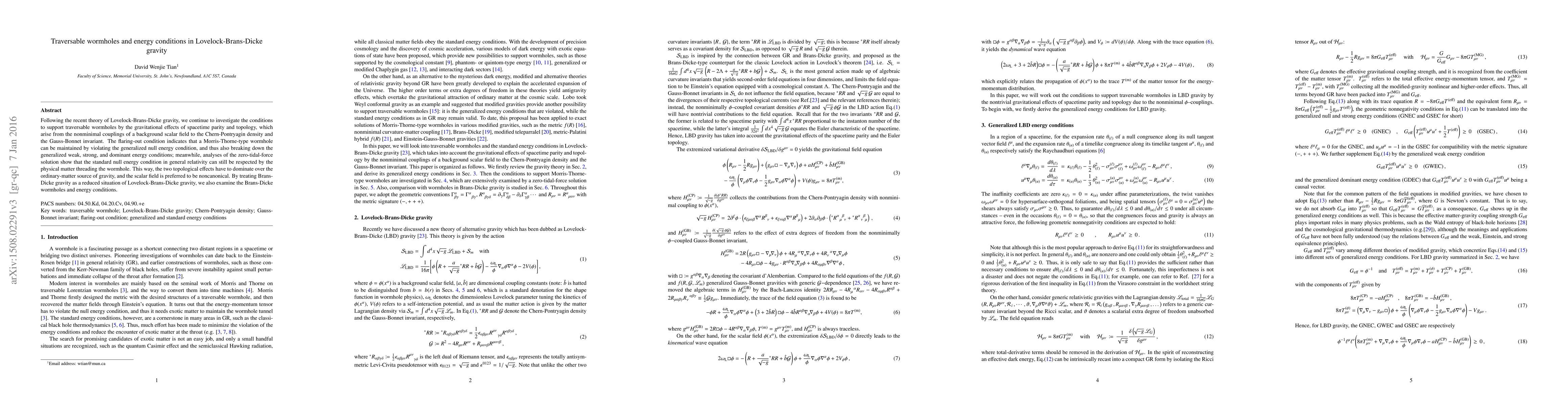 Following the recent theory of Lovelock-Brans-Dicke gravity, we continue to investigate the conditions to support traversable wormholes by the gravitational effects of spacetime parity and topology, which arise from the nonminimal couplings of a background scalar field to the Chern-Pontryagin density and the Gauss-Bonnet invariant. The flaring-out condition indicates that a Morris-Thorne-type wormhole can be maintained by violating the generalized null energy condition, and thus also breaking down the generalized weak, strong, and dominant energy conditions; meanwhile, analyses of the zero-tidal-force solution show that the standard null energy condition in general relativity can still be respected by the physical matter threading the wormhole. This way, the two topological effects have to dominate over the ordinary-matter source of gravity, and the scalar field is preferred to be noncanonical. By treating Brans-Dicke gravity as a reduced situation of Lovelock-Brans-Dicke gravity, we also examine the Brans-Dicke wormholes and energy conditions.