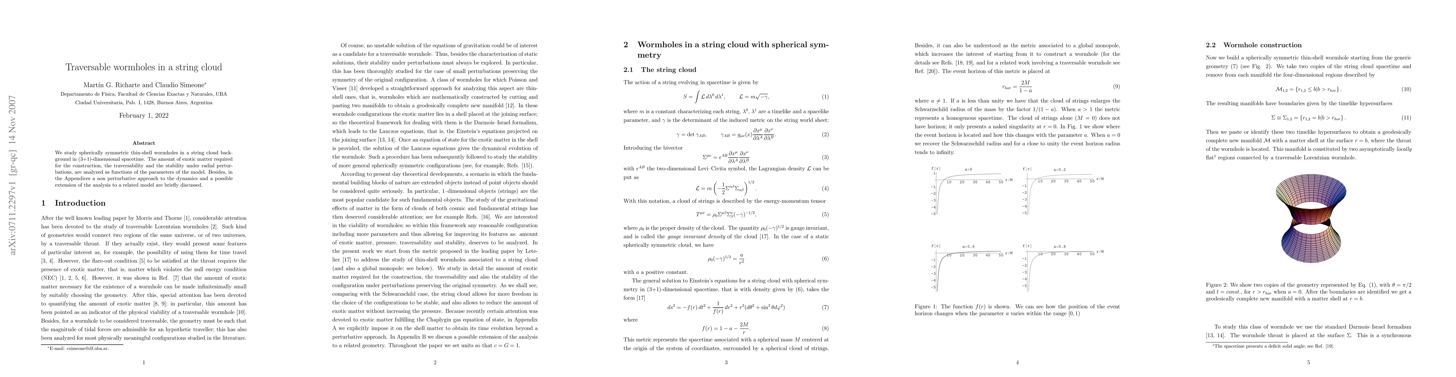 Researchers studied traversable wormholes in a string cloud background, analyzing exotic matter requirements, stability, and potential non-perturbative dynamics.