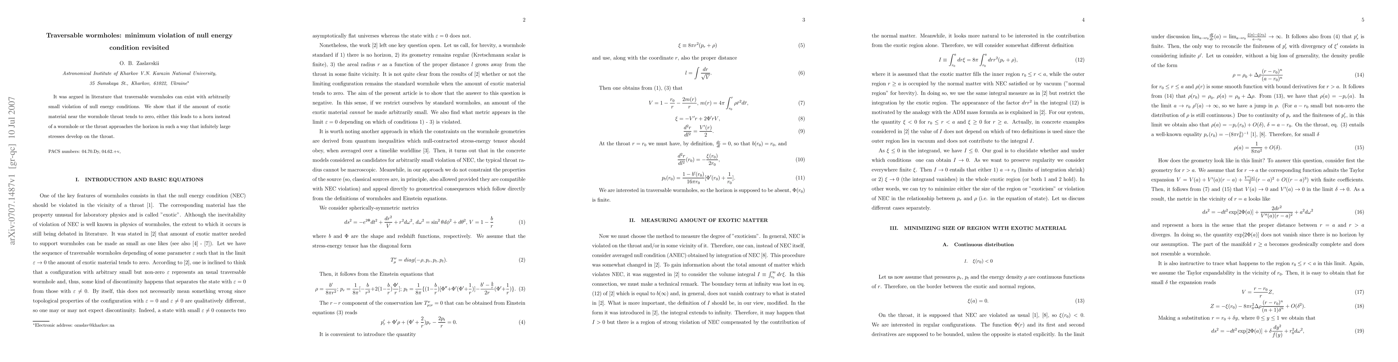 It was argued in literature that traversable wormholes can exist with arbitrarily small violation of null energy conditions. We show that if the amount of exotic material near the wormhole throat tends to zero, either this leads to a horn instead of a wormhole or the throat approaches the horizon in such a way that infnitely large stresses develop on the throat.