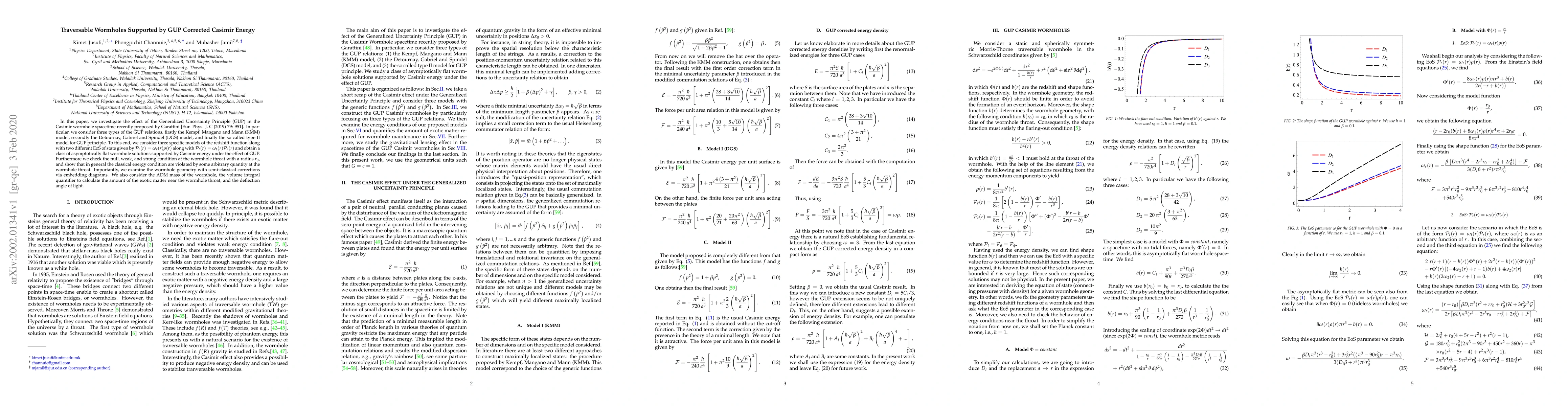This paper investigates wormholes supported by Casimir energy with corrections to the Generalized Uncertainty Principle (GUP), finding that they can exist in asymptotically flat spacetimes and violating classical energy conditions at the throat.
