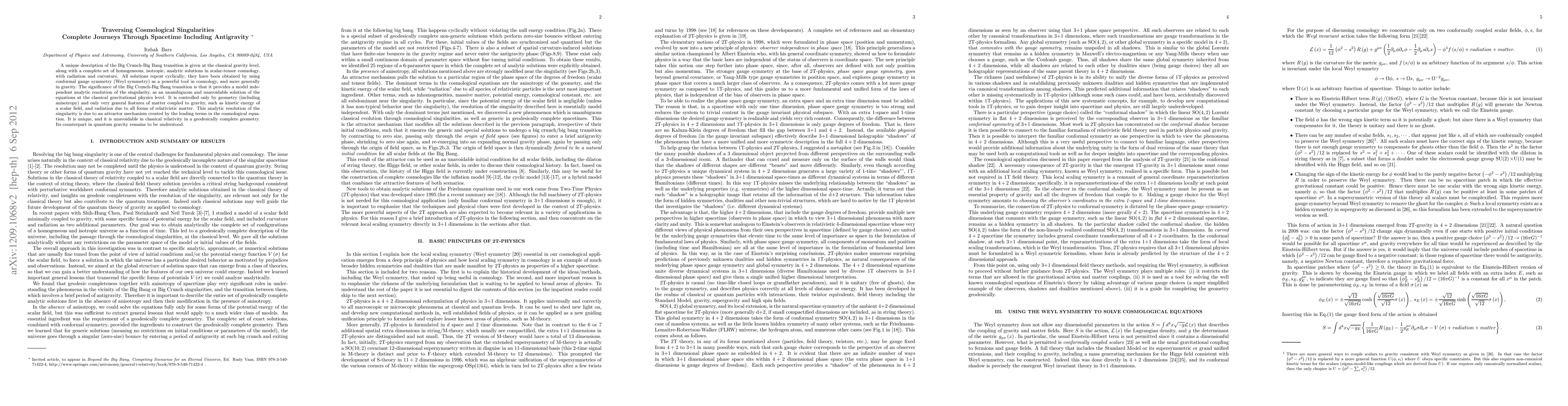 A unique description of the Big Crunch-Big Bang transition is given at the classical gravity level, along with a complete set of homogeneous, isotropic, analytic solutions in scalar-tensor cosmology, with radiation and curvature. All solutions repeat cyclically; they have been obtained by using conformal gauge symmetry (Weyl symmetry) as a powerful tool in cosmology, and more generally in gravity. The significance of the Big Crunch-Big Bang transition is that it provides a model independent analytic resolution of the singularity, as an unambiguous and unavoidable solution of the equations at the classical gravitational physics level. It is controlled only by geometry (including anisotropy) and only very general features of matter coupled to gravity, such as kinetic energy of a scalar field, and radiation due to all forms of relativistic matter. This analytic resolution of the singularity is due to an attractor mechanism created by the leading terms in the cosmological equation. It is unique, and it is unavoidable in classical relativity in a geodesically complete geometry. Its counterpart in quantum gravity remains to be understood.