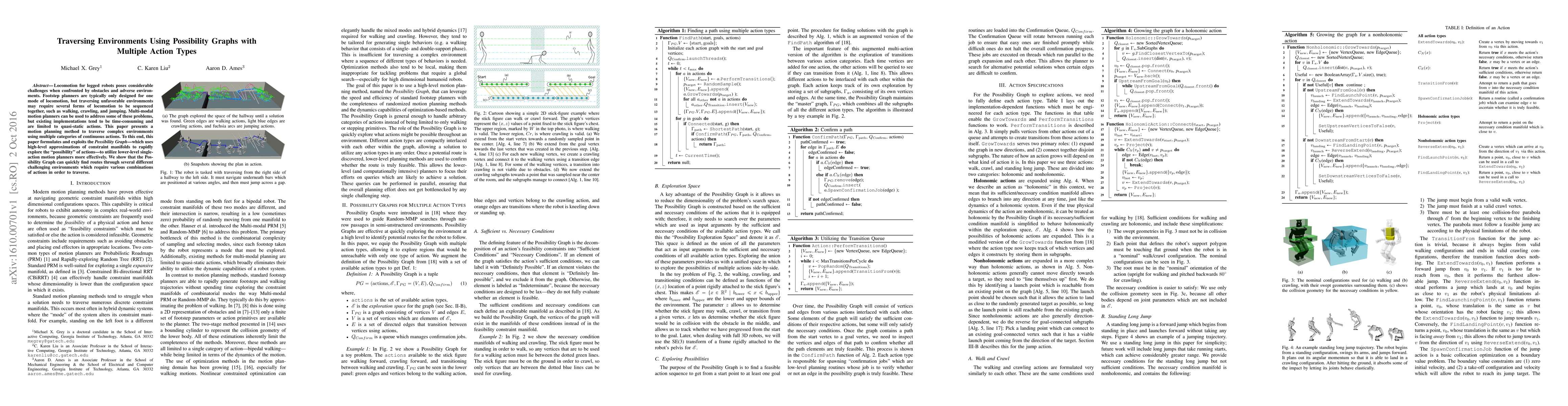 Researchers develop a new motion planning method using Possibility Graphs to quickly traverse complex environments with multiple types of actions, such as walking, crawling, and jumping.