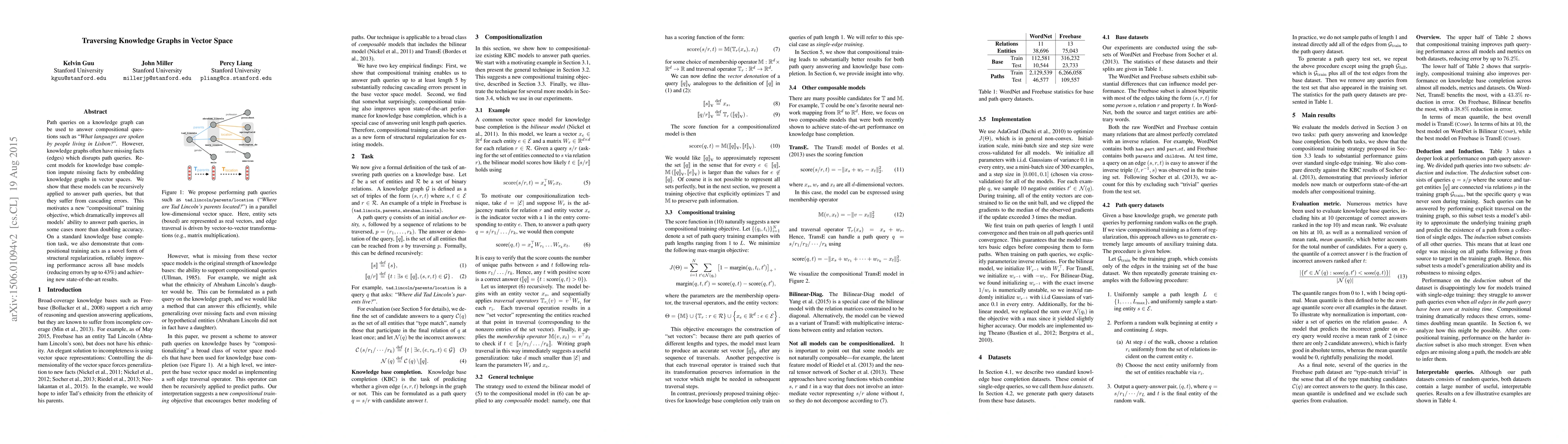 This paper proposes a new "compositional" training objective for embedding knowledge graphs in vector space to improve path query accuracy, addressing the issue of cascading errors from missing facts. The approach significantly enhances the ability to answer compositional questions and achieves new state-of-the-art results on knowledge base completion tasks.