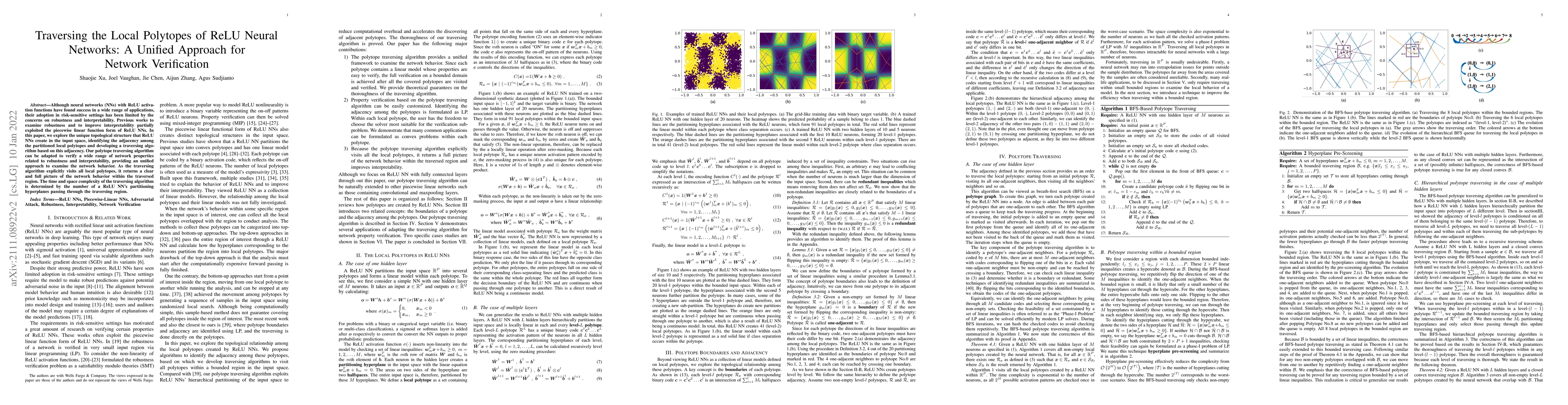 This paper presents a unified approach for verifying robustness and interpretability in ReLU neural networks by exploring their local polytope structures and developing a traversing algorithm that navigates these polytopes, providing a comprehensive examination of network behavior. The algorithm's efficiency depends on the number of ReLU partitioning hyperplanes within the traversed region.