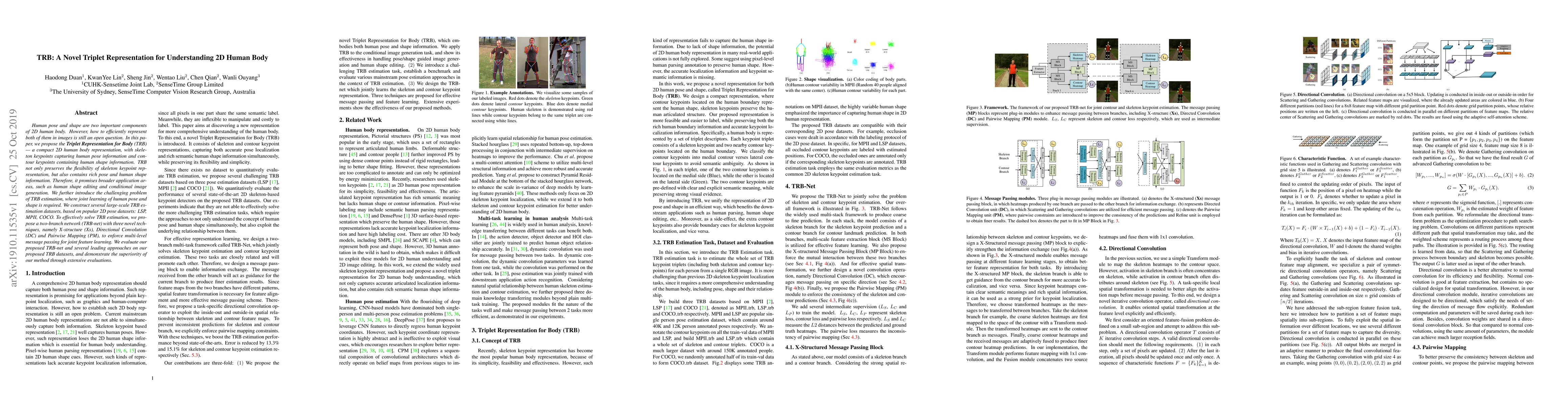 Researchers propose a new 2D human body representation called Triplet Representation for Body (TRB), which combines pose and shape information, and develop a method to estimate TRB from images, showing superiority over existing approaches.