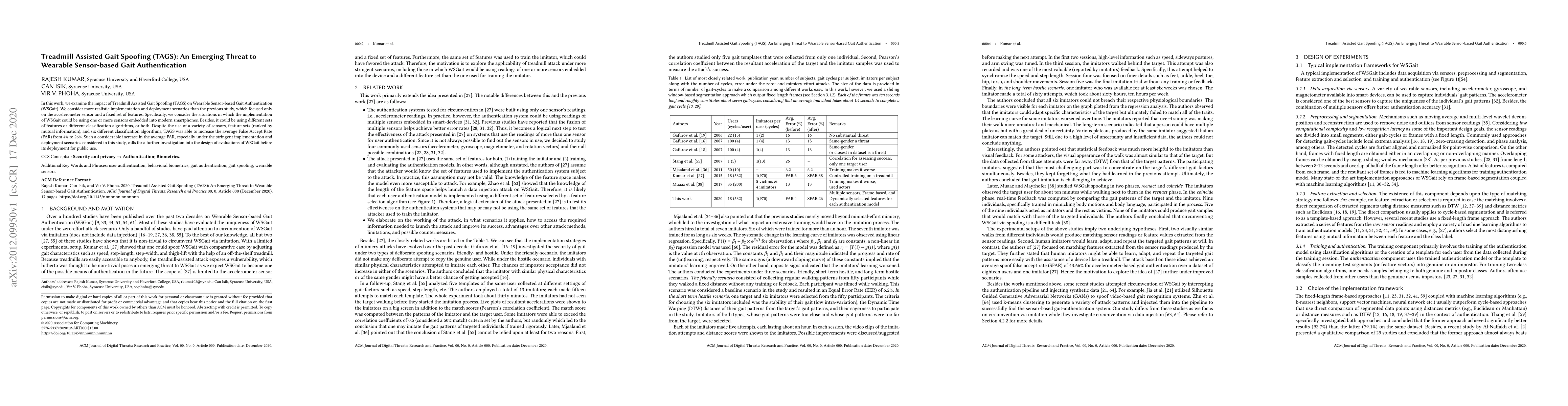 This paper investigates Treadmill Assisted Gait Spoofing (TAGS) as a threat to Wearable Sensor-based Gait Authentication (WSGait) using modern smartphone sensors, various feature sets, and classification algorithms. Despite these enhancements, TAGS significantly increased the False Accept Rate from 4% to 26%, highlighting the need for improved evaluation methods before deploying WSGait.