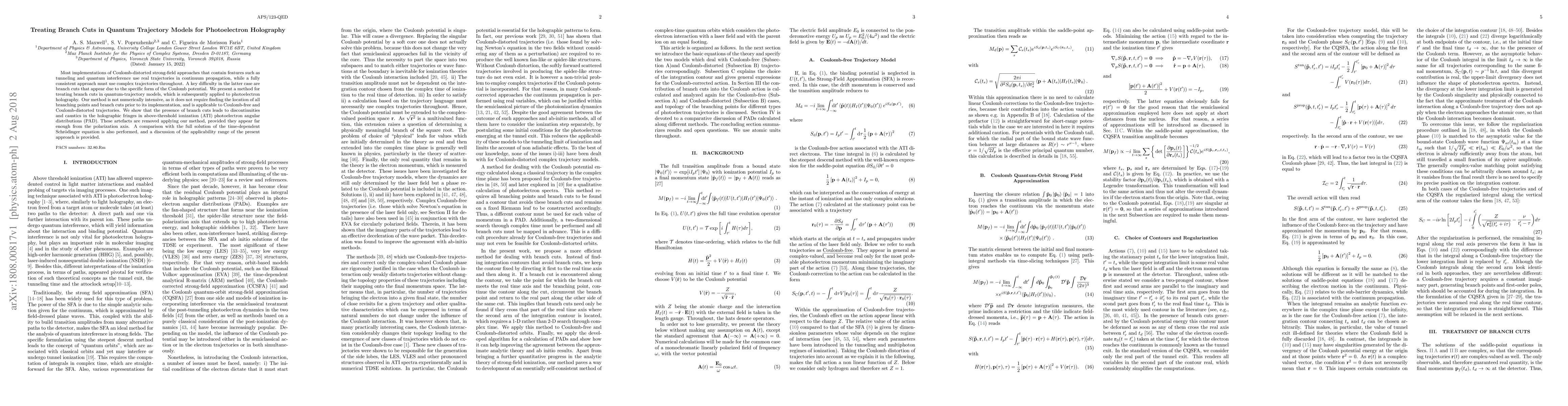 Researchers develop a method to treat branch cuts in quantum trajectory models for photoelectron holography, removing discontinuities and artefacts from holographic fringes in above-threshold ionization results.