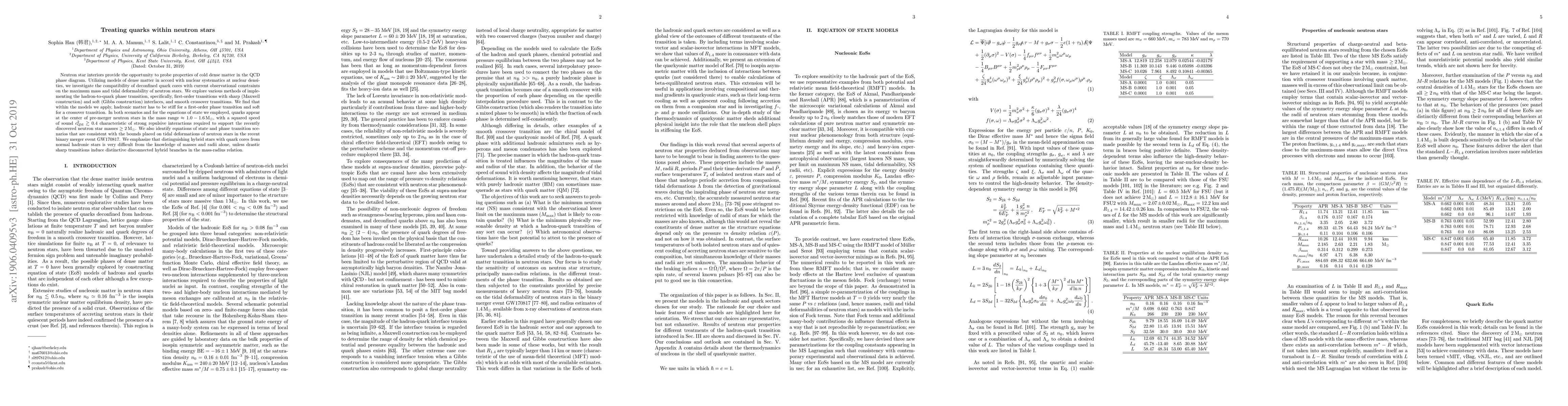Neutron star interiors provide the opportunity to probe properties of cold dense matter in the QCD phase diagram. Utilizing models of dense matter in accord with nuclear systematics at nuclear densities, we investigate the compatibility of deconfined quark cores with current observational constraints on the maximum mass and tidal deformability of neutron stars. We explore various methods of implementing the hadron-to-quark phase transition, specifically, first-order transitions with sharp (Maxwell construction) and soft (Gibbs construction) interfaces, and smooth crossover transitions. We find that within the models we apply, hadronic matter has to be stiff for a first-order phase transition and soft for a crossover transition. In both scenarios and for the equations of state we employed, quarks appear at the center of pre-merger neutron stars in the mass range $\approx 1.0-1.6\,{\rm M}_{\odot}$, with a squared speed of sound $c^2_{\rm QM}\gtrsim 0.4$ characteristic of strong repulsive interactions required to support the recently discovered neutron star masses $\geq 2\,{\rm M}_{\odot}$. We also identify equations of state and phase transition scenarios that are consistent with the bounds placed on tidal deformations of neutron stars in the recent binary merger event GW170817. We emphasize that distinguishing hybrid stars with quark cores from normal hadronic stars is very difficult from the knowledge of masses and radii alone, unless drastic sharp transitions induce distinctive disconnected hybrid branches in the mass-radius relation.