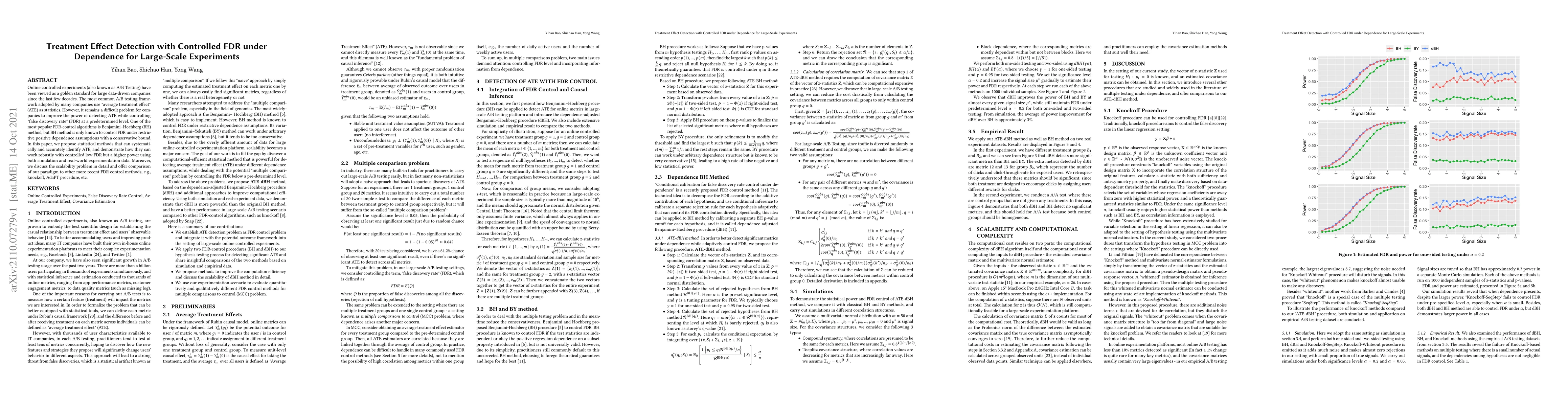 Online controlled experiments (also known as A/B Testing) have been viewed as a golden standard for large data-driven companies since the last few decades. The most common A/B testing framework adopted by many companies use "average treatment effect" (ATE) as statistics. However, it remains a difficult problem for companies to improve the power of detecting ATE while controlling "false discovery rate" (FDR) at a predetermined level. One of the most popular FDR-control algorithms is BH method, but BH method is only known to control FDR under restrictive positive dependence assumptions with a conservative bound. In this paper, we propose statistical methods that can systematically and accurately identify ATE, and demonstrate how they can work robustly with controlled low FDR but a higher power using both simulation and real-world experimentation data. Moreover, we discuss the scalability problem in detail and offer comparison of our paradigm to other more recent FDR control methods, e.g., knockoff, AdaPT procedure, etc.