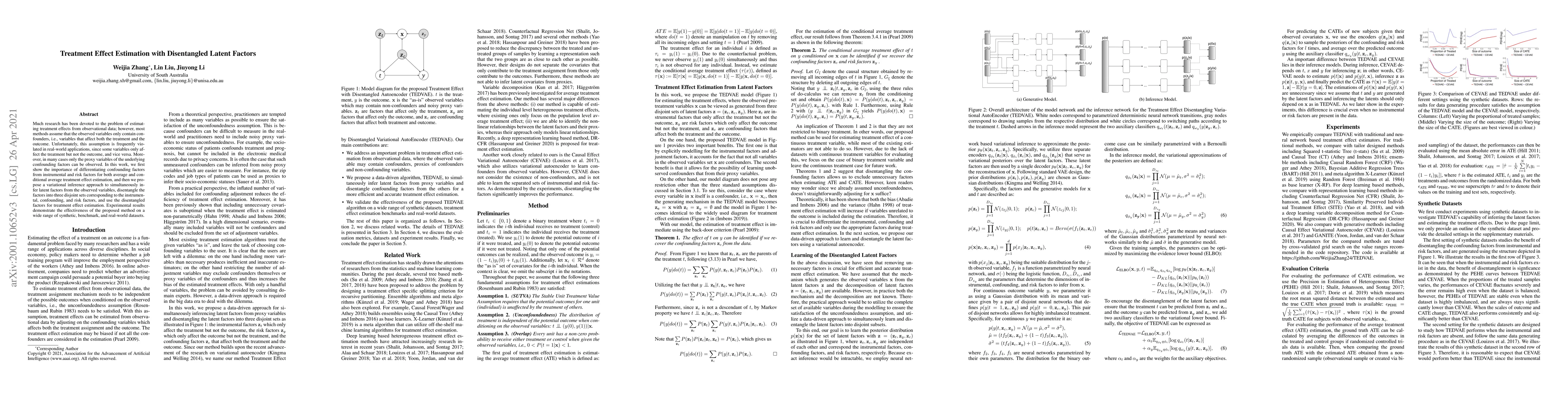 This paper proposes a variational inference method to estimate treatment effects by disentangling latent factors into instrumental, confounding, and risk factors, addressing the limitations of existing methods that assume all observed variables are confounders. Experimental results show the effectiveness of the approach on various datasets.