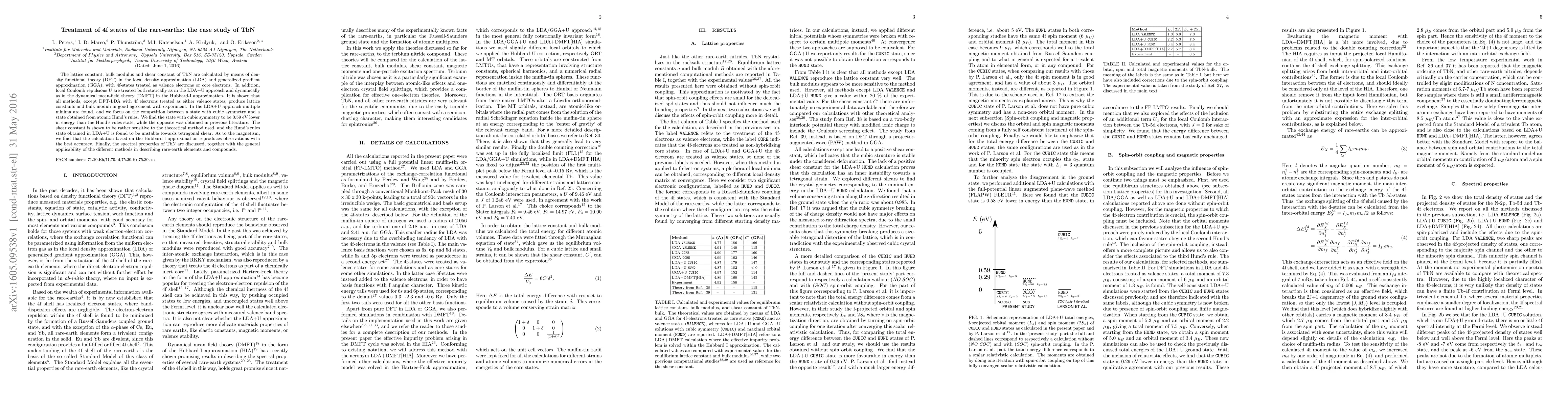 The lattice constant, bulk modulus and shear constant of TbN are calculated by means of density functional theory (DFT) in the local density approximation (LDA) and generalized gradient approximation (GGA), with 4f-states treated as valence electrons or core electrons. In addition, local Coulomb repulsions U are treated both statically as in the LDA+U approach and dynamically as in the dynamical mean-field theory (DMFT) in the Hubbard-I approximation. It is shown that all methods, except DFT-LDA with 4f electrons treated as either valence states, produce lattice constants and bulk moduli in good agreement with experiment. In the LDA+U approach multiple minima are found, and we focus on the competition between a state with cubic symmetry and a state obtained from atomic Hund's rules. We find the state with cubic symmetry to be 0.59 eV lower in energy than the Hund's rules state, while the opposite was obtained in previous literature. The shear constant is shown to be rather sensitive to the theoretical method used, and the Hund's rules state obtained in LDA+U is found to be unstable towards tetragonal shear. As to the magnetism, we find that the calculation based on the Hubbard-I approximation reproduces observations with the best accuracy. Finally, the spectral properties of TbN are discussed, together with the general applicability of the different methods in describing rare-earth elements and compounds.