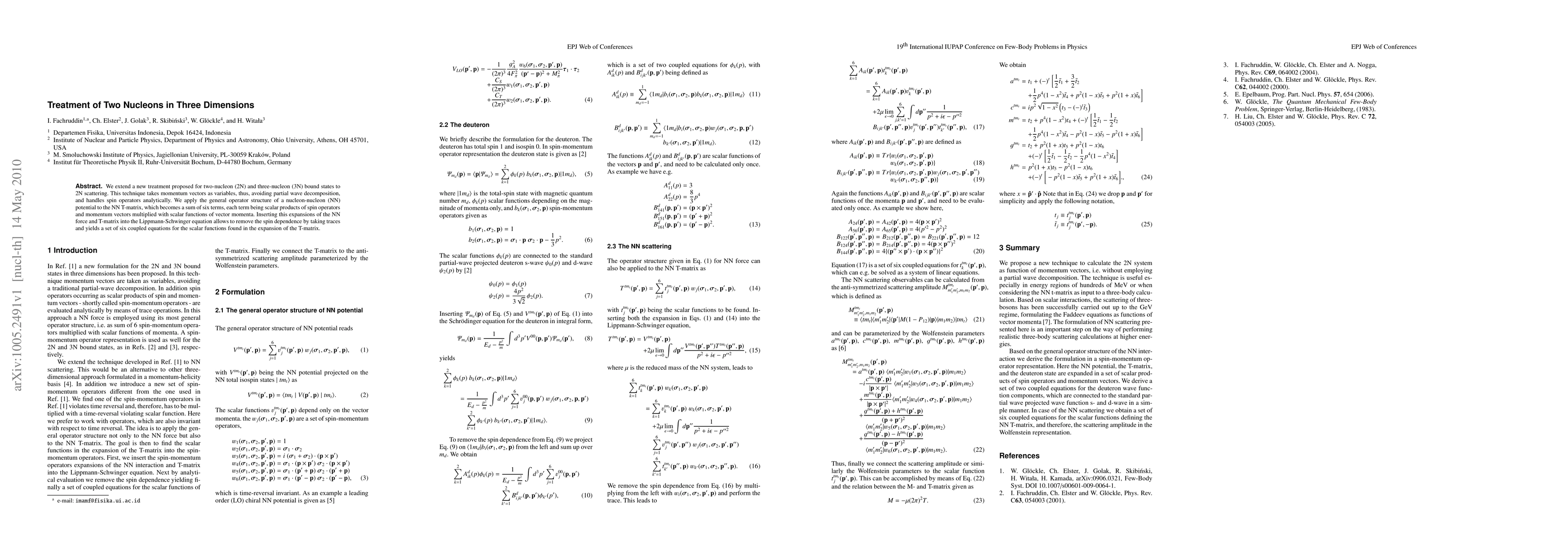 We extend a new treatment proposed for two-nucleon (2N) and three-nucleon (3N) bound states to 2N scattering. This technique takes momentum vectors as variables, thus, avoiding partial wave decomposition, and handles spin operators analytically. We apply the general operator structure of a nucleon-nucleon (NN) potential to the NN T-matrix, which becomes a sum of six terms, each term being scalar products of spin operators and momentum vectors multiplied with scalar functions of vector momenta. Inserting this expansions of the NN force and T-matrix into the Lippmann-Schwinger equation allows to remove the spin dependence by taking traces and yields a set of six coupled equations for the scalar functions found in the expansion of the T-matrix.