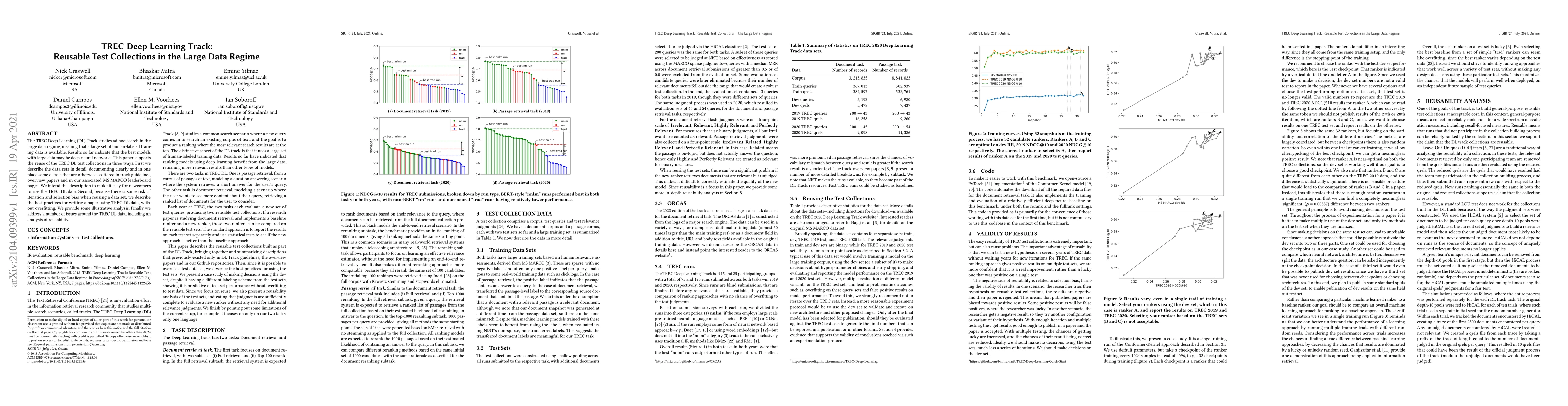 This paper details the TREC Deep Learning Track, focusing on ad hoc search using extensive human-labeled training data. It emphasizes the potential of deep neural networks in this regime, provides a comprehensive description of TREC DL datasets for new users, outlines best practices to avoid overfitting when reusing the data, and addresses reusability concerns.
