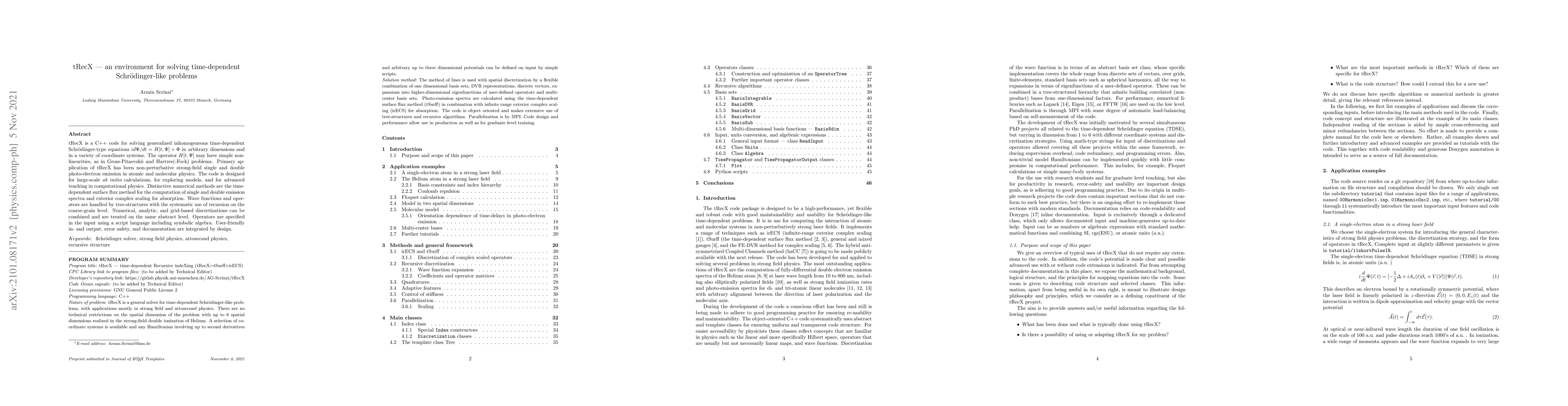 TRecX is a C++ code for solving generalized inhomogeneous time-dependent Schr\"odinger-type equations $id\Psi/dt = H[t,\Psi] + \Phi$ in arbitrary dimensions and in a variety of coordinate systems. The operator $H[t,\Psi]$ may have simple non-linearities, as in Gross-Pitaevskii and Hartree(-Fock) problems. Primary application of tRecX has been non-perturbative strong-field single and double photo-electron emission in atomic and molecular physics. The code is designed for large-scale {\it ab initio} calculations, for exploring models, and for advanced teaching in computational physics. Distinctive numerical methods are the time-dependent surface flux method for the computation of single and double emission spectra and exterior complex scaling for absorption. Wave functions and operators are handled by tree-structures with the systematic use of recursion on the coarse-grain level. Numerical, analytic, and grid-based discretizations can be combined and are treated on the same abstract level. Operators are specified in the input using a script language including symbolic algebra. User-friendly in- and output, error safety, and documentation are integrated by design.