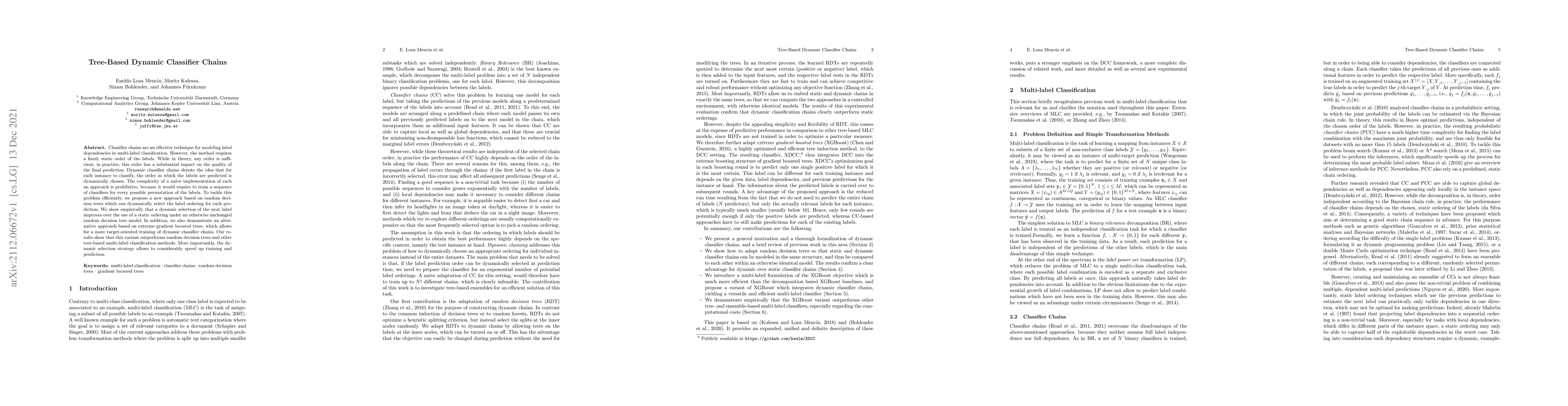 This paper proposes dynamic classifier chains based on random decision trees and extreme gradient boosted trees to improve multi-label classification by dynamically selecting label orderings. Experimental results show that this approach outperforms static orderings and other tree-based methods, significantly speeding up training and prediction.