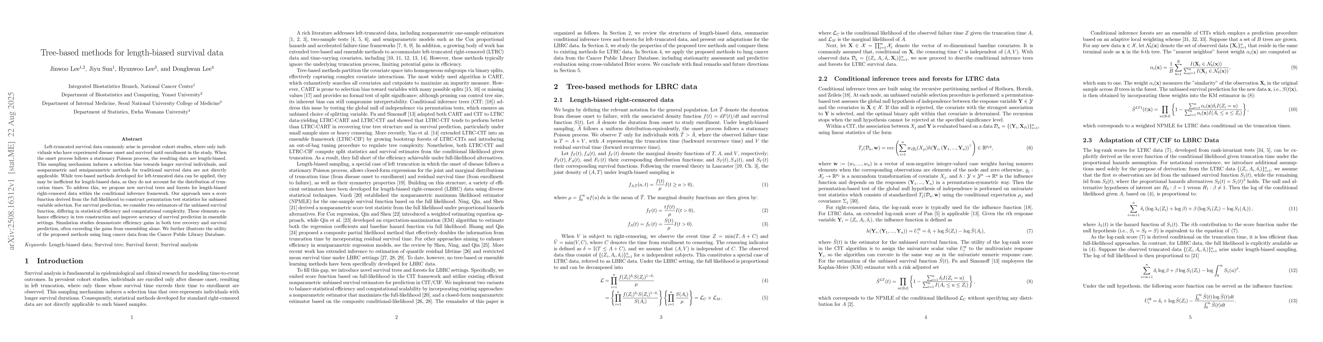 Left-truncated survival data commonly arise in prevalent cohort studies, where only individuals who have experienced disease onset and survived until enrollment in the study. When the onset process follows a stationary Poisson process, the resulting data are length-biased. This sampling mechanism induces a selection bias towards longer survival individuals, and nonparametric and semiparametric methods for traditional survival data are not directly applicable. While tree-based methods developed for left-truncated data can be applied, they may be inefficient for length-biased data, as they do not account for the distribution of truncation times. To address this, we propose new survival trees and forests for length-biased right-censored data within the conditional inference framework. Our approach uses a score function derived from the full likelihood to construct permutation test statistics for unbiased variable selection. For survival prediction, we consider two estimators of the unbiased survival function, differing in statistical efficiency and computational complexity. These elements enhance efficiency in tree construction and improve accuracy of survival prediction in ensemble settings. Simulation studies demonstrate efficiency gains in both tree recovery and survival prediction, often exceeding the gains from ensembling alone. We further illustrate the utility of the proposed methods using lung cancer data from the Cancer Public Library Database.