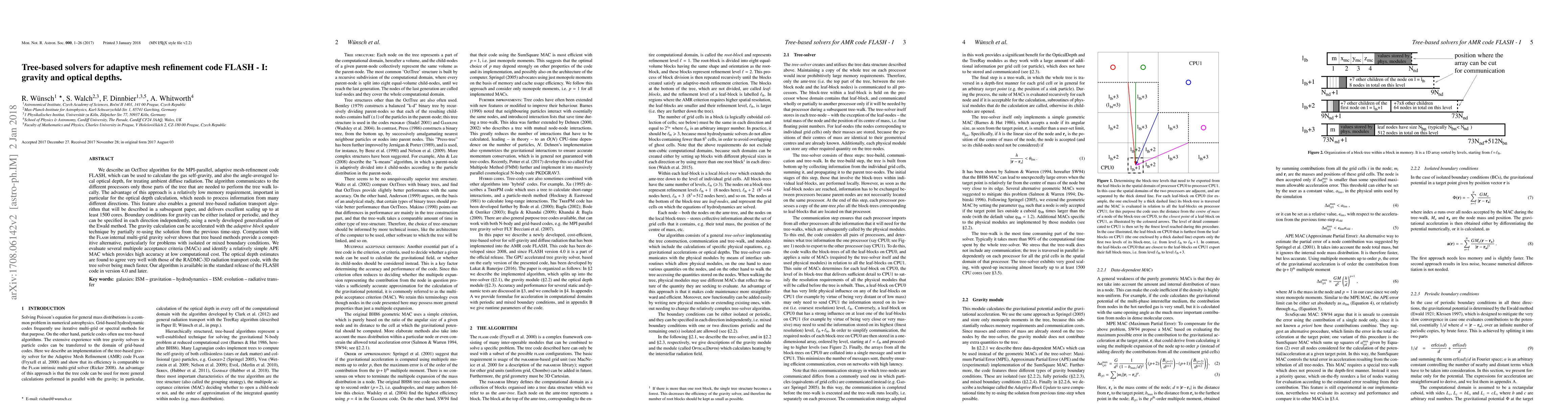 The paper presents an efficient OctTree algorithm for FLASH that calculates gravity and optical depths, incorporating adaptive block updates and various multipole acceptance criteria.