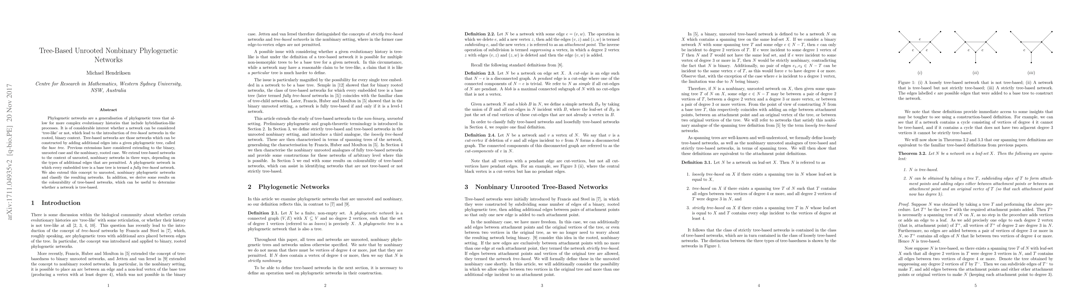 This paper extends the concept of tree-based phylogenetic networks to unrooted, nonbinary contexts, classifying these networks and exploring their colourability to determine if they are tree-based. The study introduces fully tree-based networks and discusses different types of additional edges permitted in this new framework.