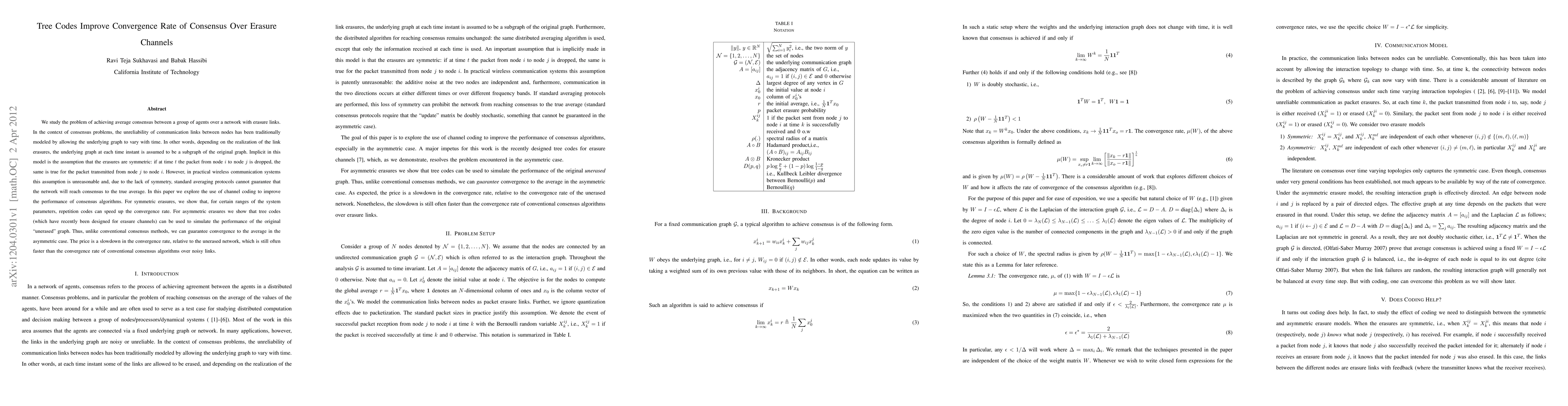 This paper investigates consensus algorithms over networks with erasure links, demonstrating that tree codes can improve convergence rates compared to traditional methods. For symmetric erasures, repetition codes accelerate convergence, while tree codes ensure convergence in asymmetric scenarios, albeit at a slower rate than unerased networks.