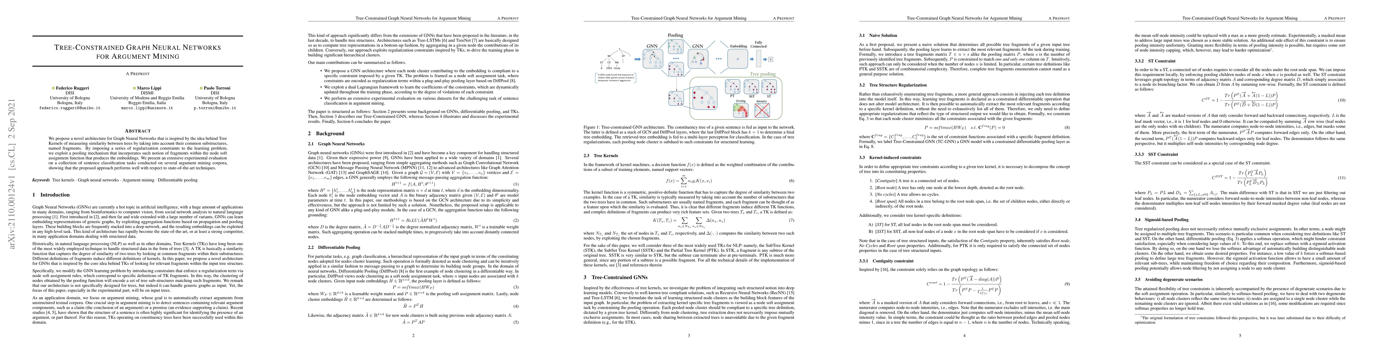 We propose a novel architecture for Graph Neural Networks that is inspired by the idea behind Tree Kernels of measuring similarity between trees by taking into account their common substructures, named fragments. By imposing a series of regularization constraints to the learning problem, we exploit a pooling mechanism that incorporates such notion of fragments within the node soft assignment function that produces the embeddings. We present an extensive experimental evaluation on a collection of sentence classification tasks conducted on several argument mining corpora, showing that the proposed approach performs well with respect to state-of-the-art techniques.