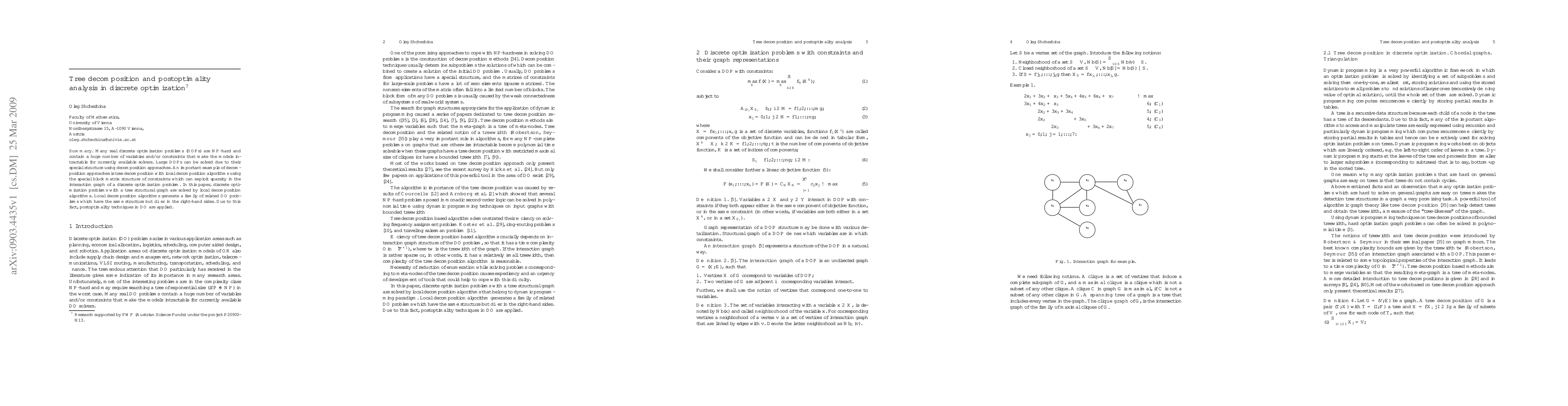 This paper explores the use of tree decomposition and local decomposition algorithms to solve large, $NP$-hard discrete optimization problems (DOPs) by exploiting the problem's special structure and sparsity. It also discusses postoptimality analysis techniques to handle related problems generated by local decomposition algorithms.