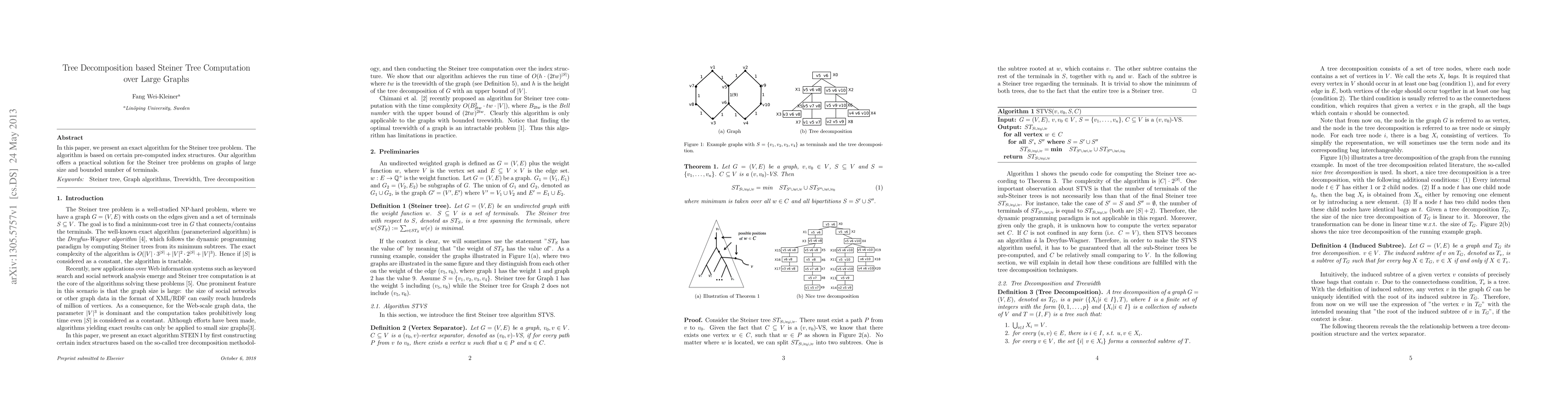Summary: This paper introduces an exact algorithm for the Steiner tree problem using pre-computed index structures, providing a practical solution for large graphs with a bounded number of terminals. The method enhances computational efficiency for such complex problems.
