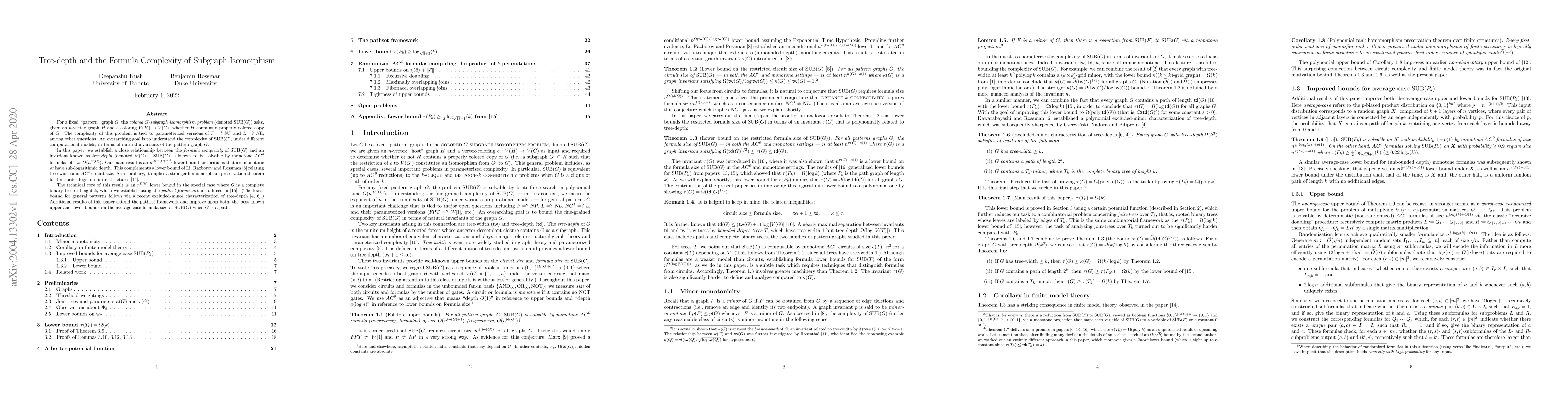 Researchers link formula complexity of subgraph isomorphism to tree-depth, establishing a lower bound of $n^{ ilde ext{O}}( ext{td}(G)^{1/3})}$ for monotone formulas.