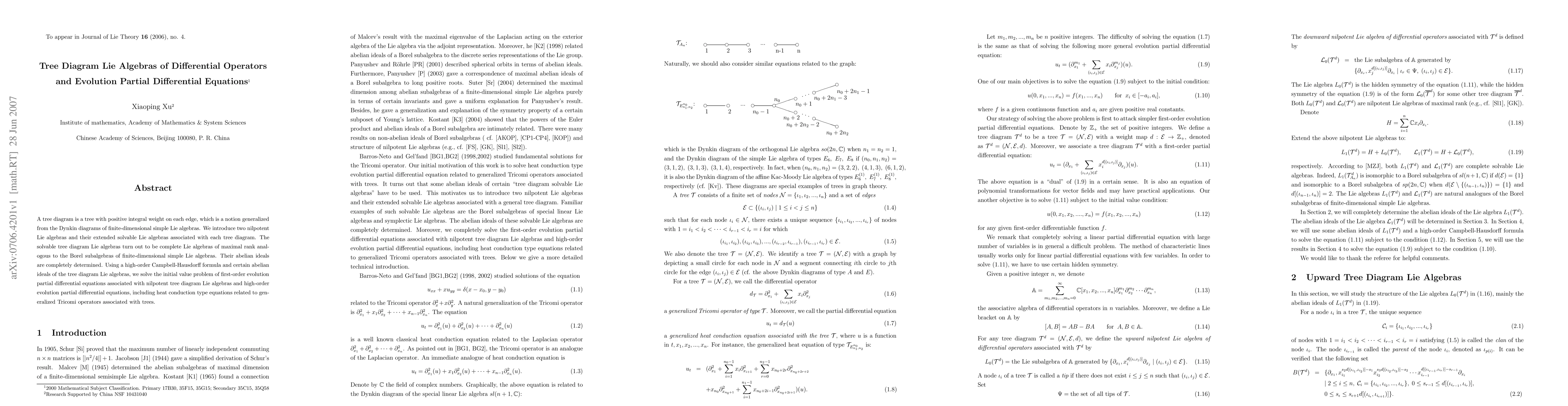The paper introduces tree diagram Lie algebras of differential operators, establishing two nilpotent Lie algebras and their extended solvable versions, which solve initial value problems for first-order and high-order evolution partial differential equations, including heat conduction equations.