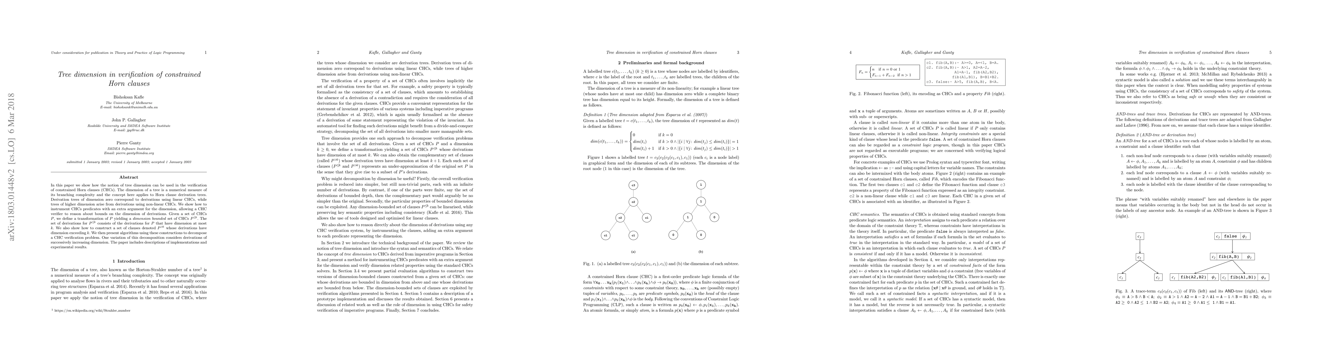 This paper explores the use of tree dimension in verifying constrained Horn clauses (CHCs), showing how tree dimension measures branching complexity in derivation trees. It introduces methods to bound the dimension of CHC derivations and presents algorithms for decomposing CHC verification problems based on these dimensions, along with experimental results.