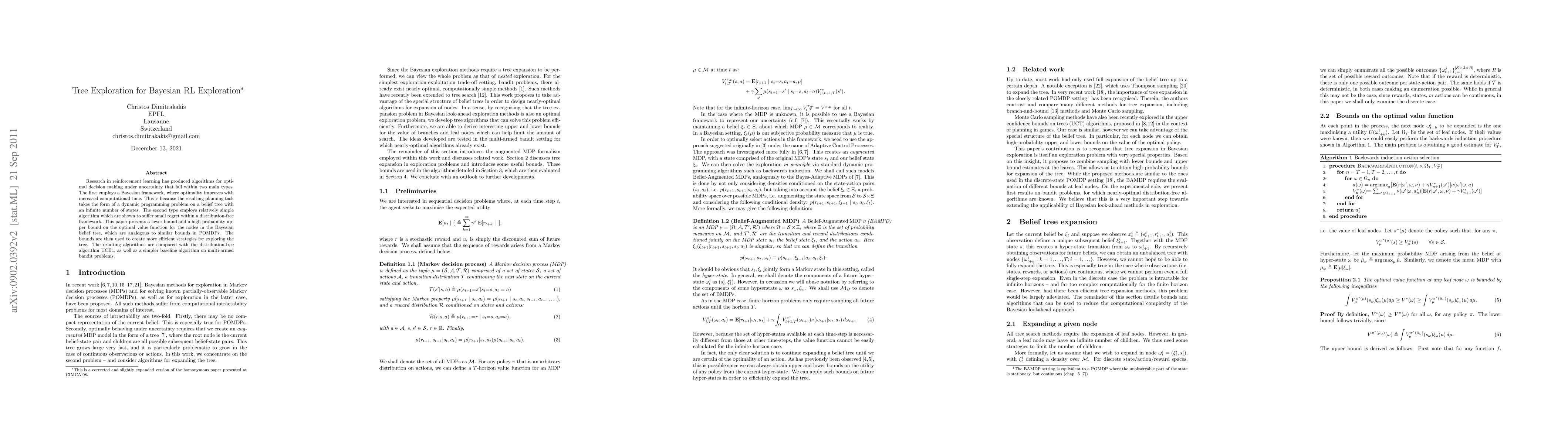 This paper develops efficient algorithms for exploring Bayesian reinforcement learning belief trees, establishing lower and upper bounds on the optimal value function. The proposed strategies outperform the distribution-free UCB1 algorithm and a baseline in multi-armed bandit problems.