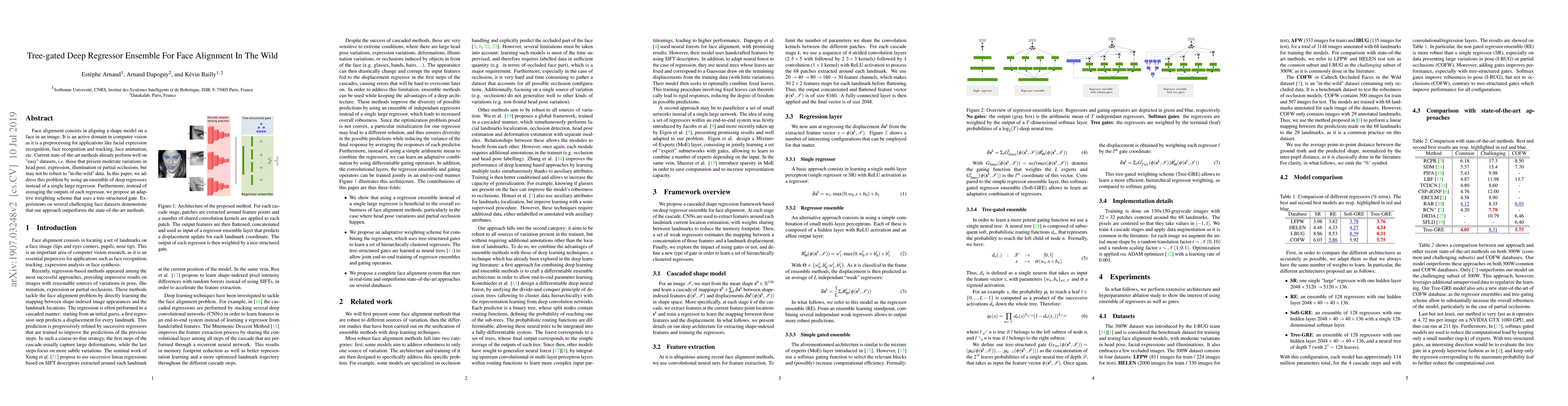 This paper proposes an ensemble of tree-gated deep regressors for face alignment in challenging "in-the-wild" conditions, using an adaptive weighting scheme that outperforms existing methods on various datasets. The method enhances robustness by leveraging multiple regressors instead of a single large model.