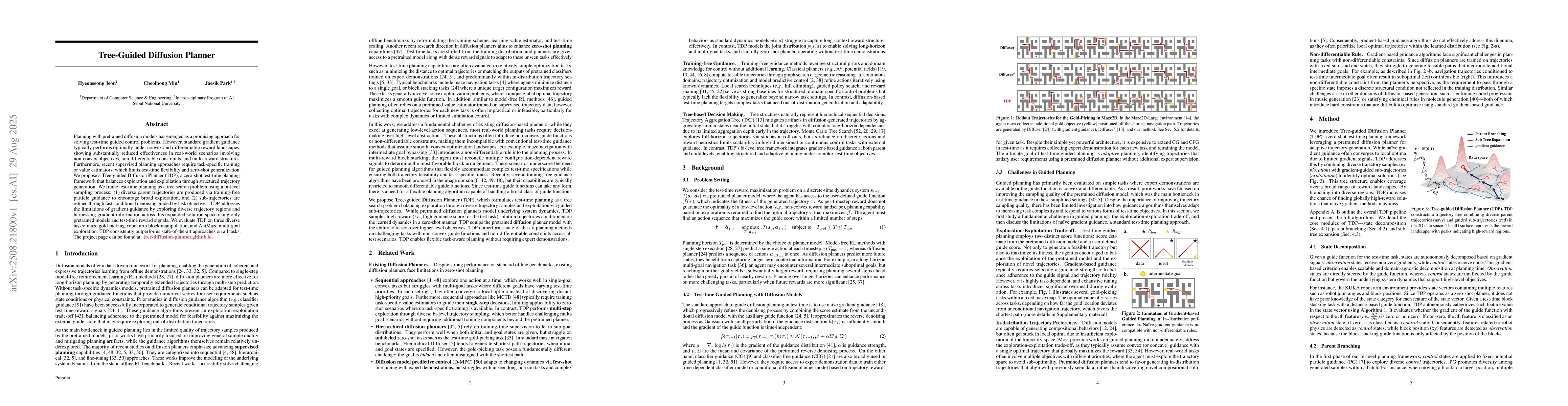 Planning with pretrained diffusion models has emerged as a promising approach for solving test-time guided control problems. However, standard gradient guidance typically performs optimally under convex and differentiable reward landscapes, showing substantially reduced effectiveness in real-world scenarios involving non-convex objectives, non-differentiable constraints, and multi-reward structures. Furthermore, recent supervised planning approaches require task-specific training or value estimators, which limits test-time flexibility and zero-shot generalization. We propose a Tree-guided Diffusion Planner (TDP), a zero-shot test-time planning framework that balances exploration and exploitation through structured trajectory generation. We frame test-time planning as a tree search problem using a bi-level sampling process: (1) diverse parent trajectories are produced via training-free particle guidance to encourage broad exploration, and (2) sub-trajectories are refined through fast conditional denoising guided by task objectives. TDP addresses the limitations of gradient guidance by exploring diverse trajectory regions and harnessing gradient information across this expanded solution space using only pretrained models and test-time reward signals. We evaluate TDP on three diverse tasks: maze gold-picking, robot arm block manipulation, and AntMaze multi-goal exploration. TDP consistently outperforms state-of-the-art approaches on all tasks. The project page can be found at: tree-diffusion-planner.github.io.