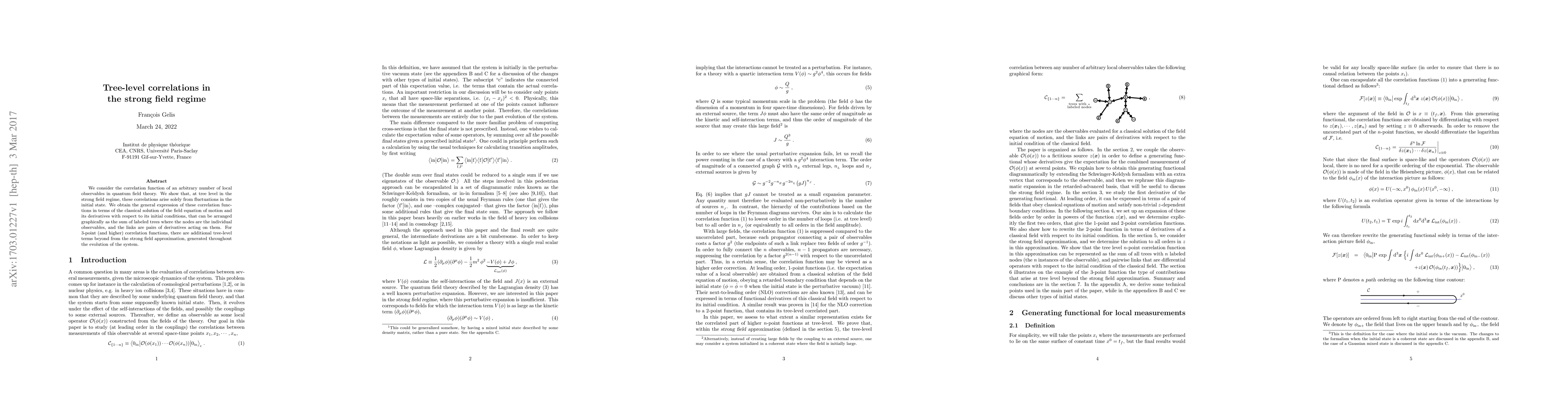 We consider the correlation function of an arbitrary number of local observables in quantum field theory. We show that, at tree level in the strong field regime, these correlations arise solely from fluctuations in the initial state. We obtain the general expression of these correlation functions in terms of the classical solution of the field equation of motion and its derivatives with respect to its initial conditions, that can be arranged graphically as the sum of labeled trees where the nodes are the individual observables, and the links are pairs of derivatives acting on them. For 3-point (and higher) correlation functions, there are additional tree-level terms beyond from the strong field approximation, generated throughout the evolution of the system.